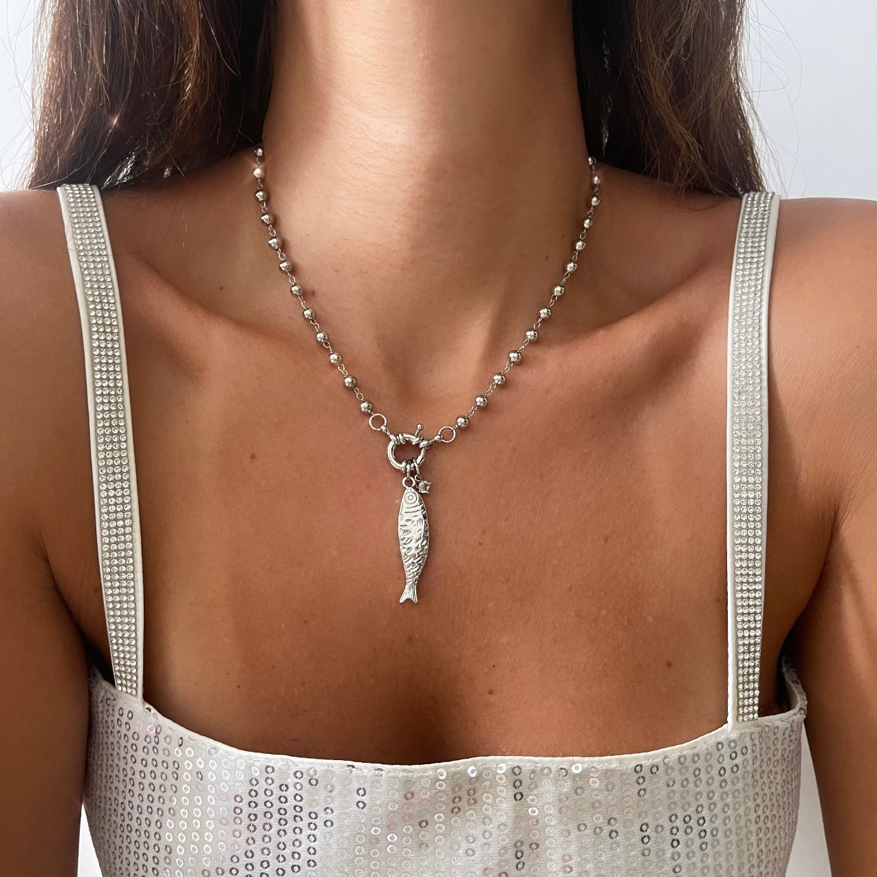 שרשרת חרוזים חרוזים צבעונית ארוכה דג זהב