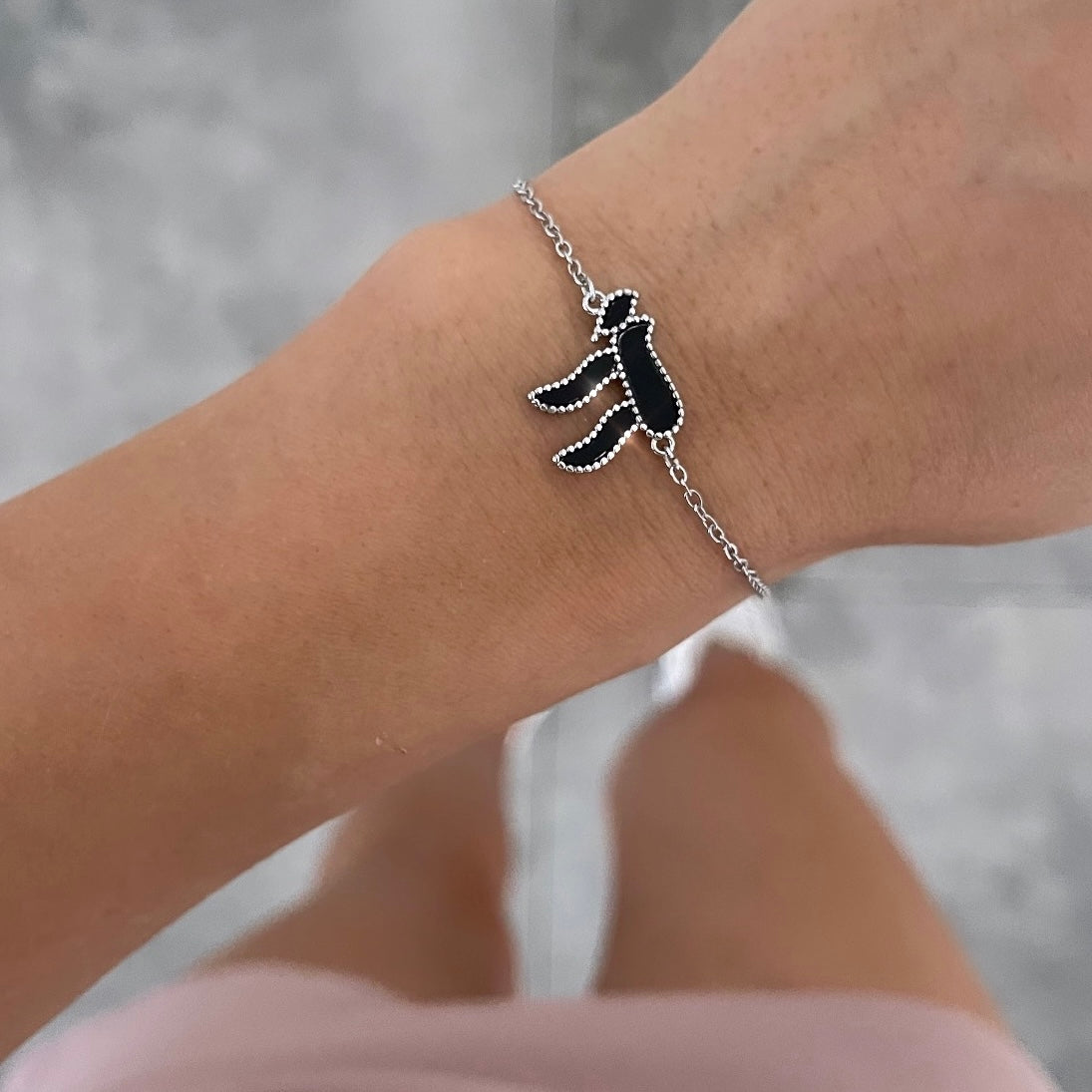 צמיד דק ״חי״ גדול שחור כסף