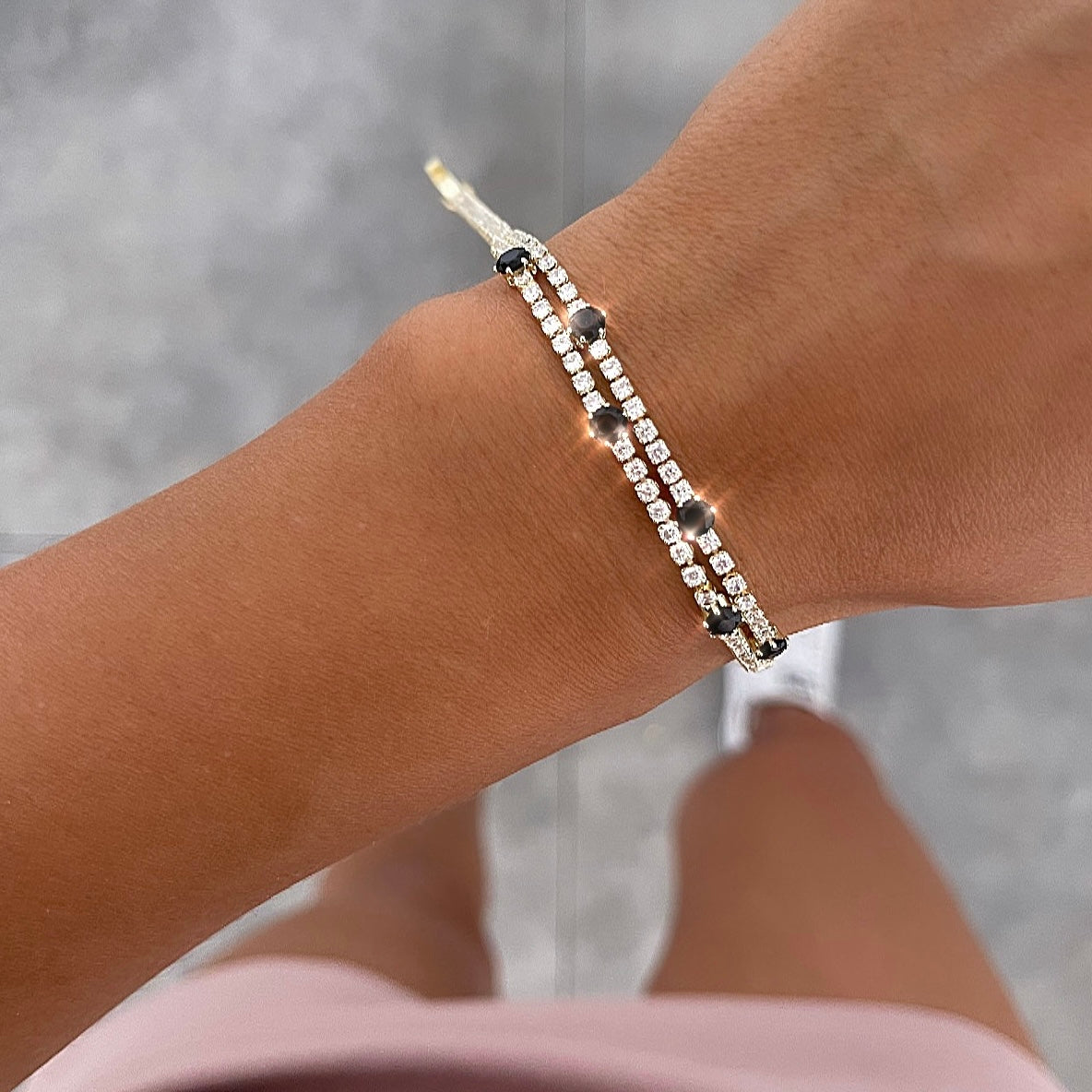צמיד דו טניס אבנים עגולים שחורים עליו זהב