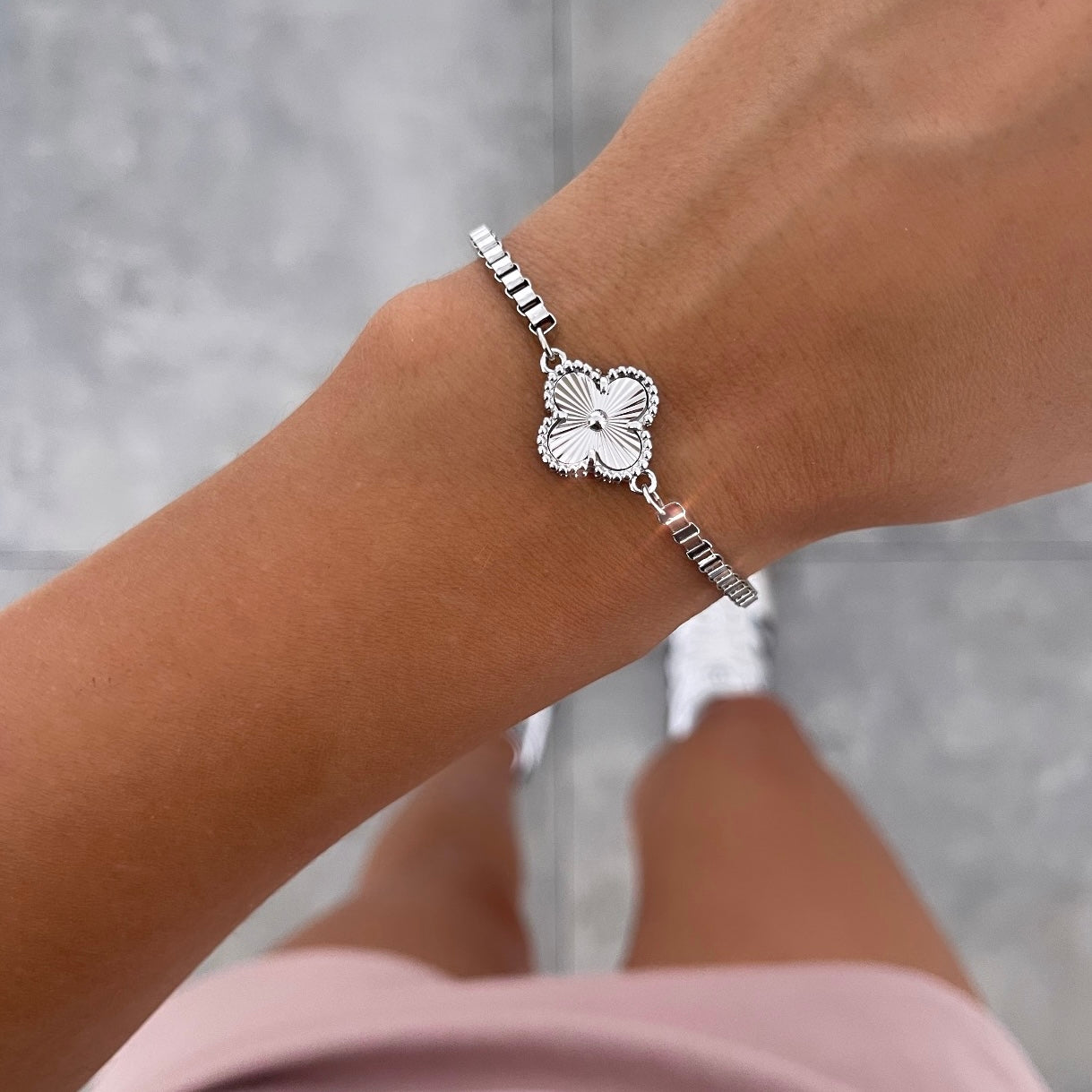 צמיד קוביות באמצע טולי מתכתי בודד כסף