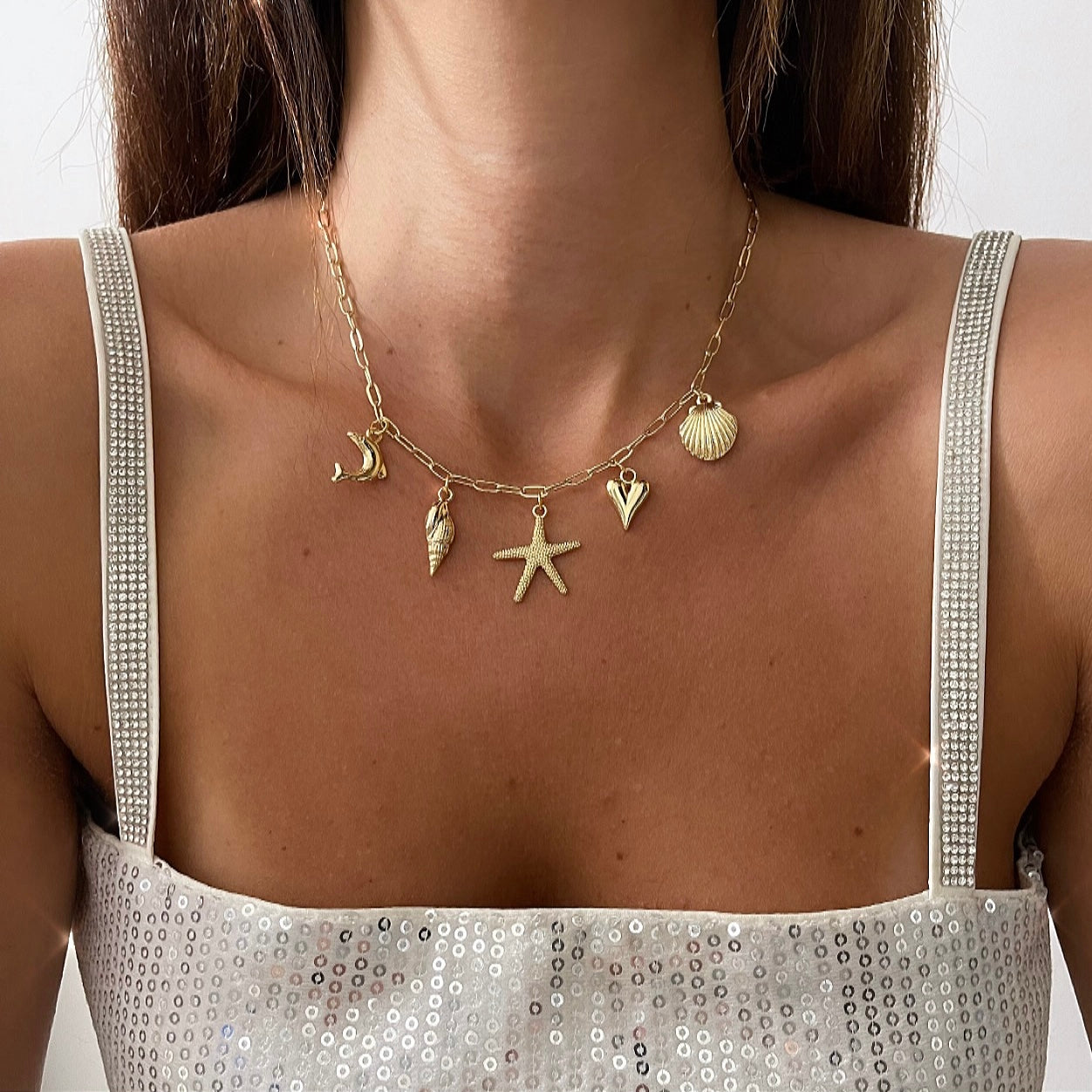 שרשרת ליאן אלמנטים ים דולפין כוכב ים לב שפיצי זהב