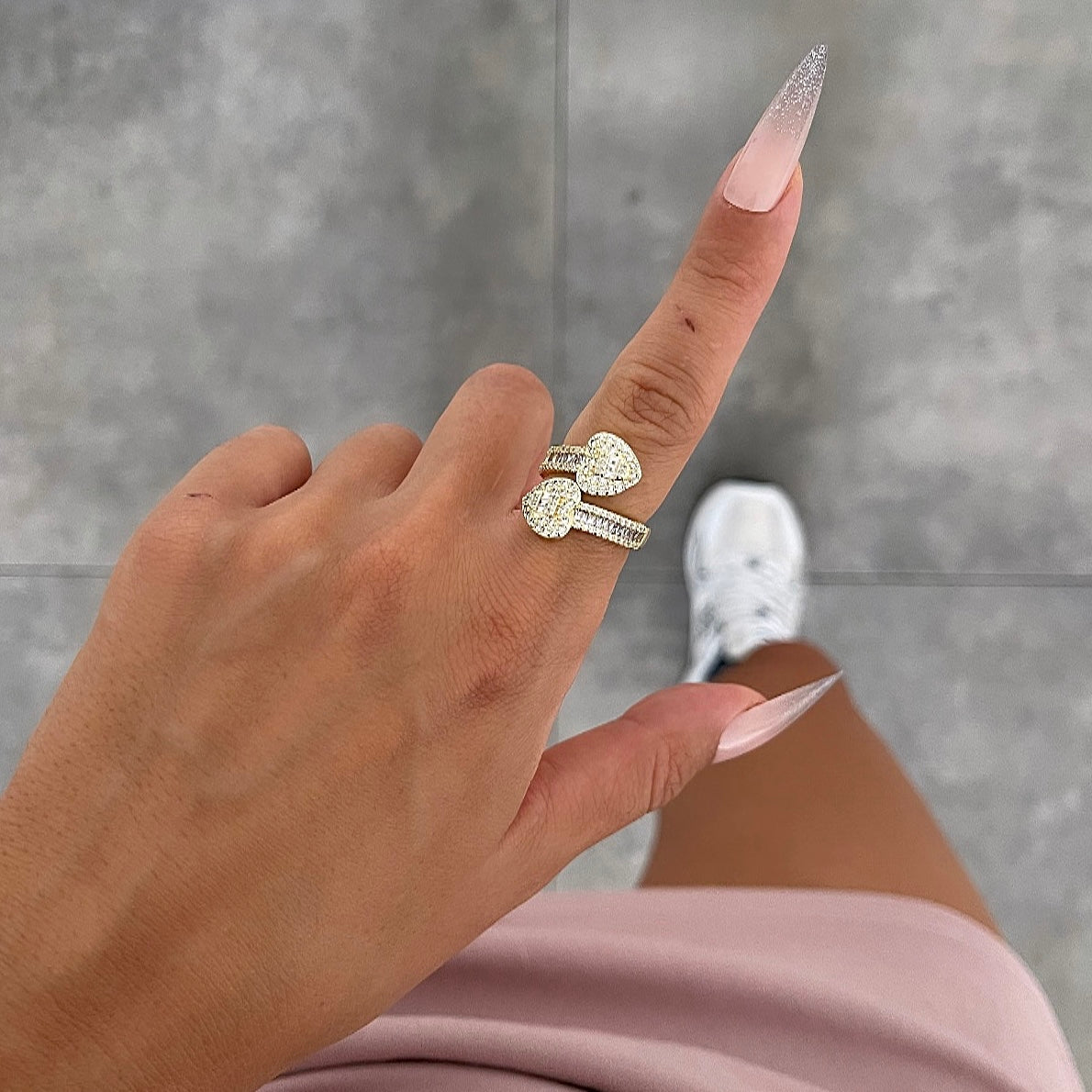 טבעת איקס מול לבבות משובץ עשירה זהב