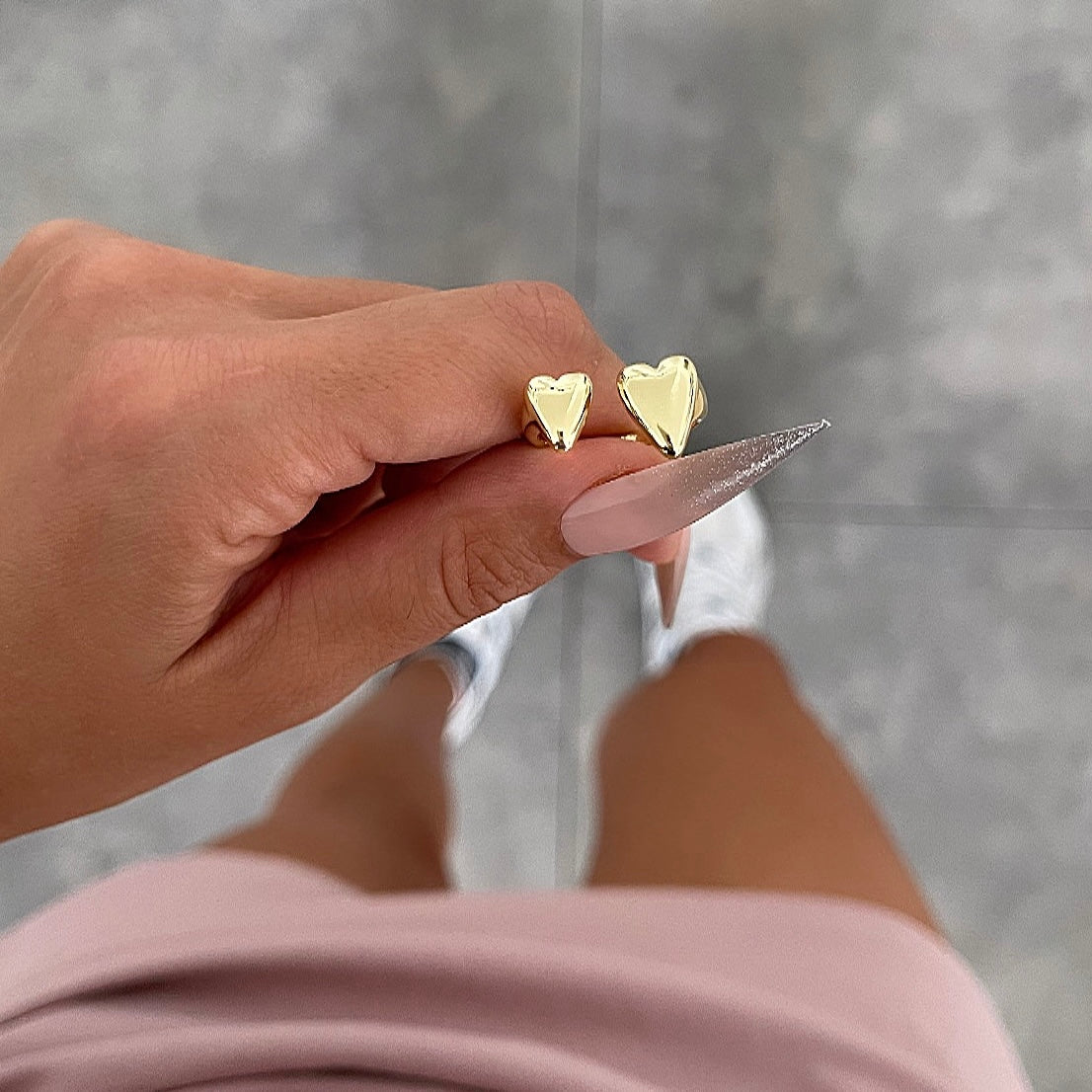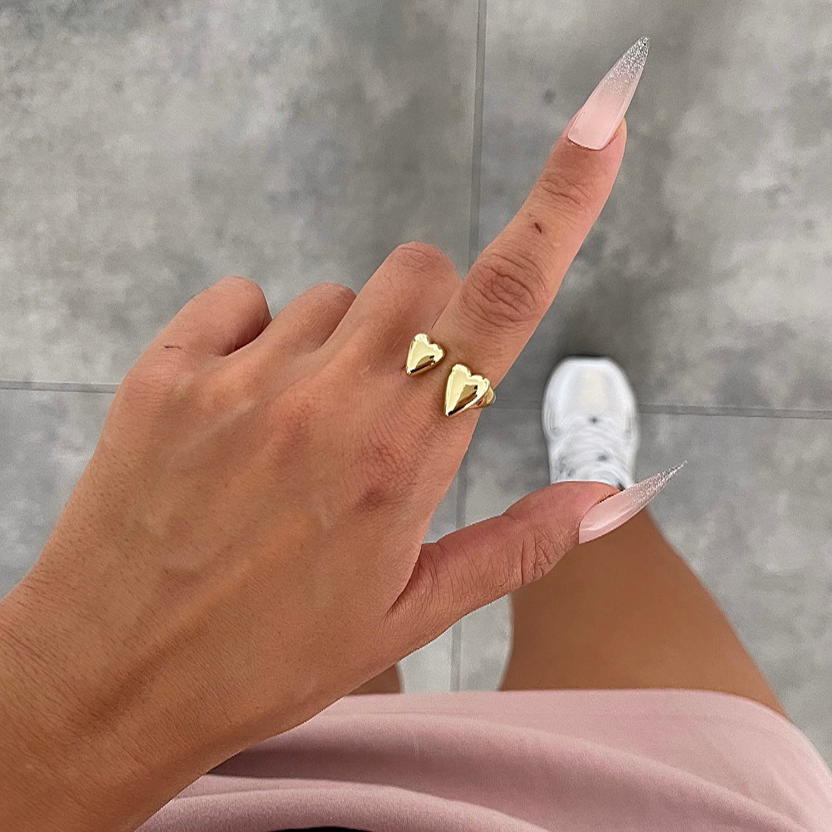 טבעת פתוחה 2 לבבות גדול וקטן מאסיבי חלק זהב