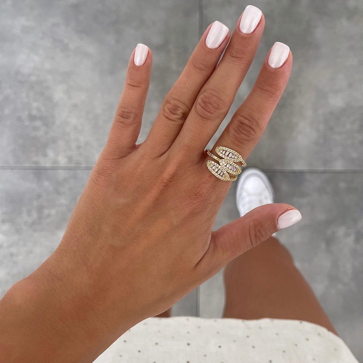 טבעת3 אובליים מוארכים משובצים זהב - מידה 19 בלבד