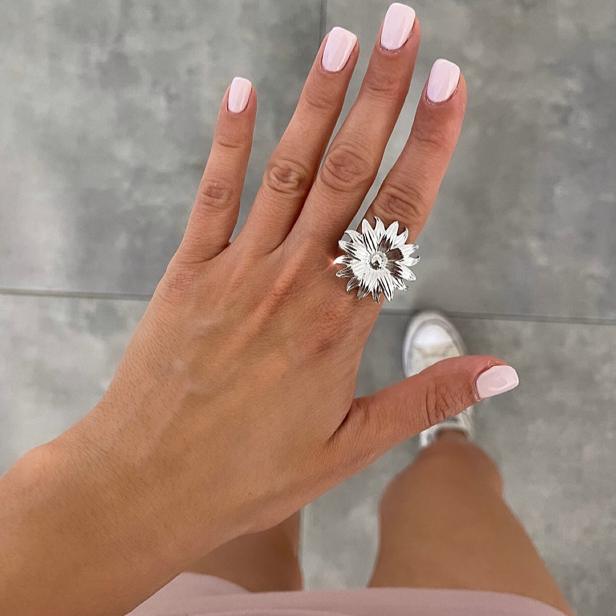טבעת פתוחה מלא עלי כותרת ענק כסף