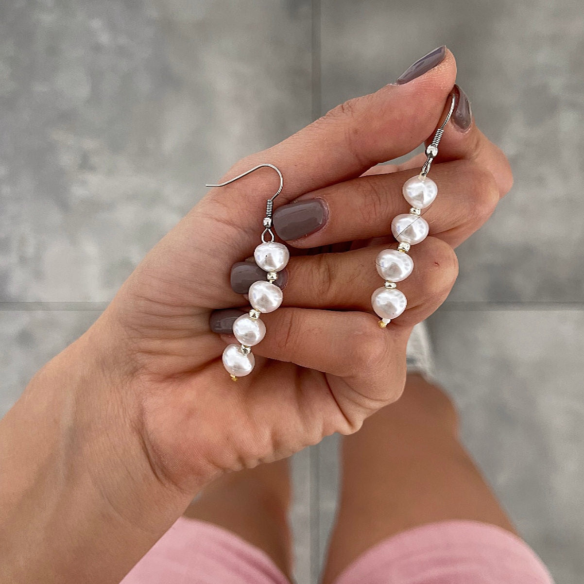 עגילים 4 פנינים לאורך כסף