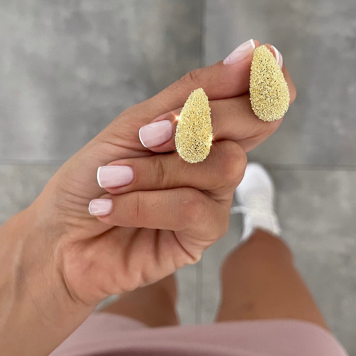 עגילים טיפה לילה מעוגלת כולה משובצת זהב