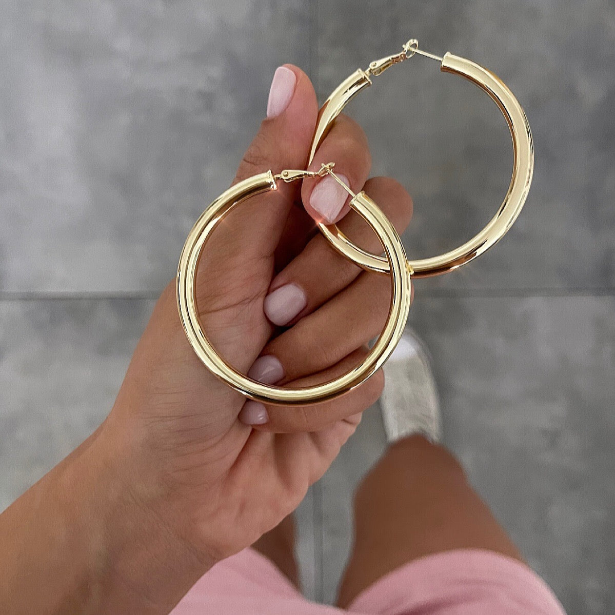 עגילים חישוק צינור עבה מעוגל יפה זהב