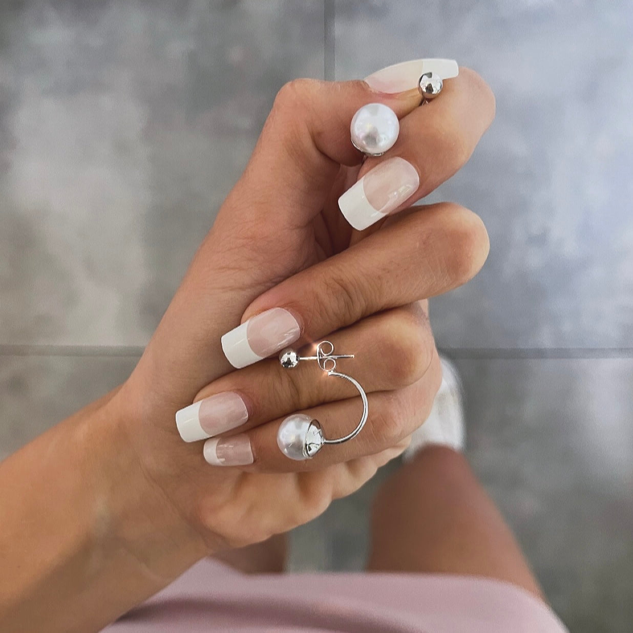 עגילים פנינה מצד אחד מצד שני כדור כסף