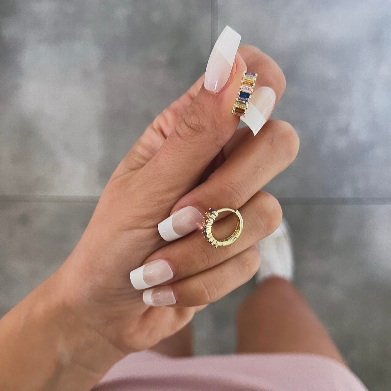 עגילים חישוק קטן שיבוצי צבעוני זהב