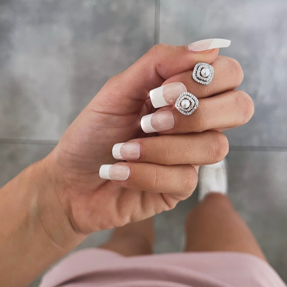עגילים סוליטר כפול צמוד מרובע פנינה כסף