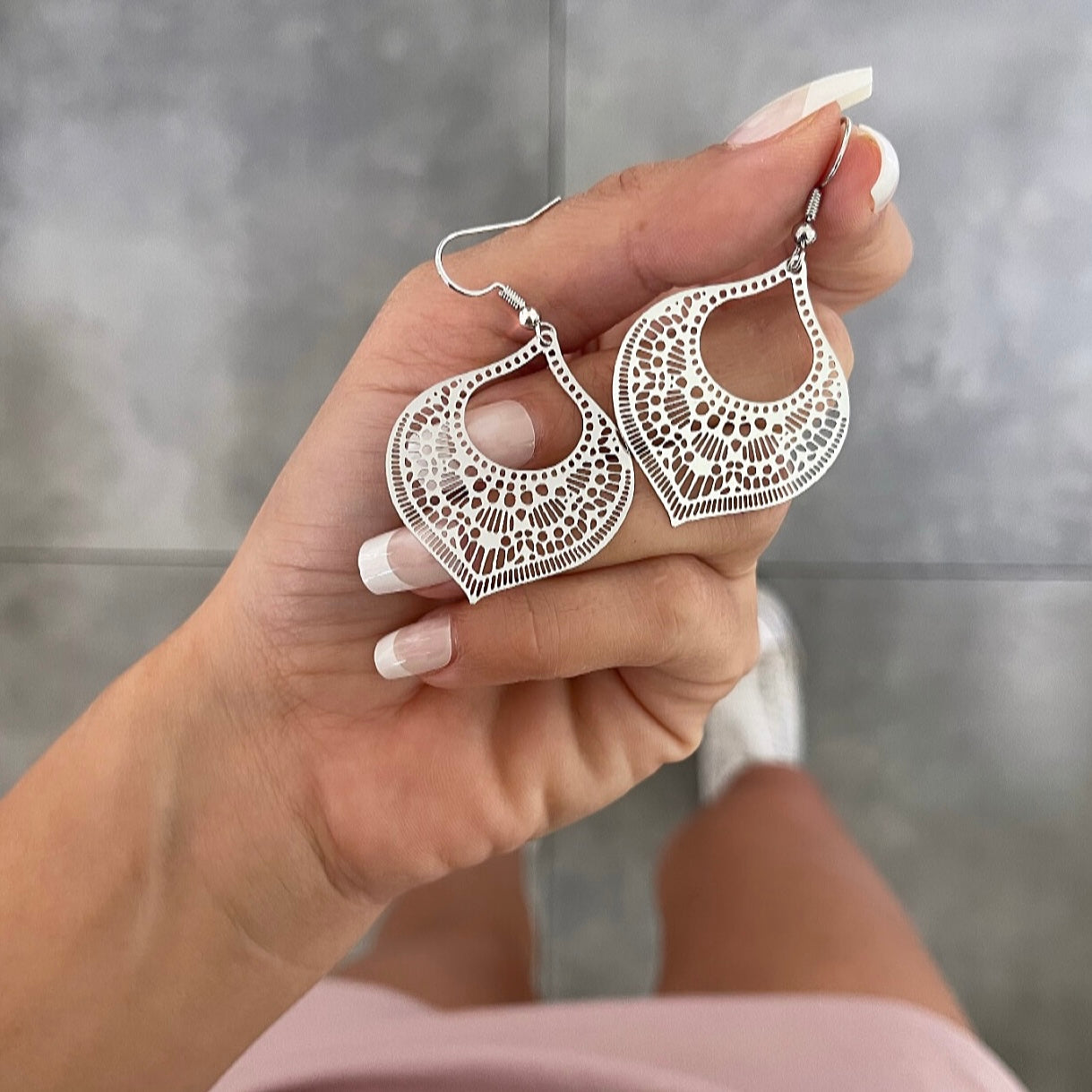 עגילים מניפה טיפה טקסטוקרה כסף