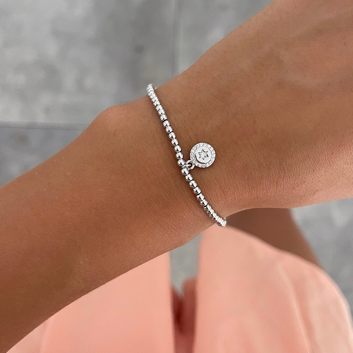 צמיד כדורים תליון נופל עיגול קטן עם מגן דוד כסף