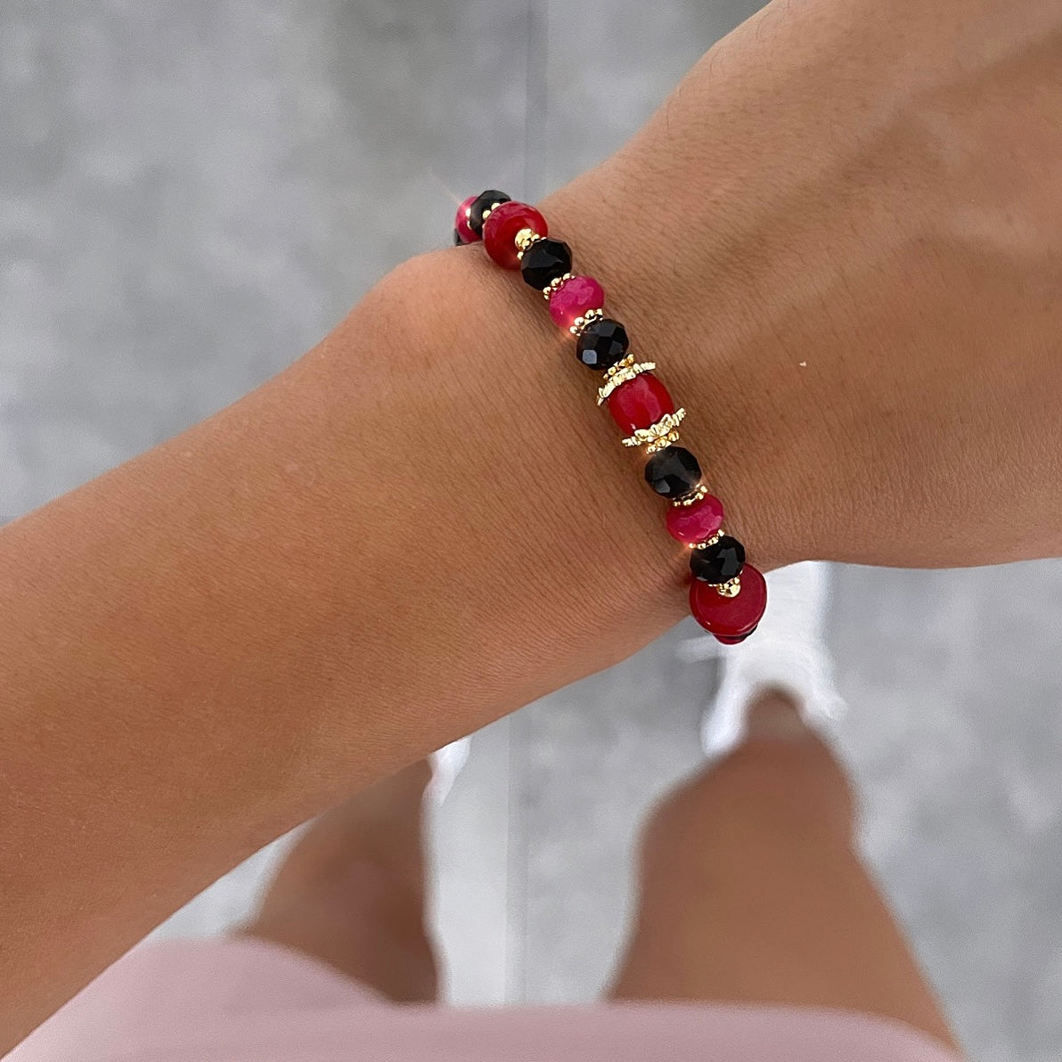 צמיד חרוזים שחור בורדו זהב