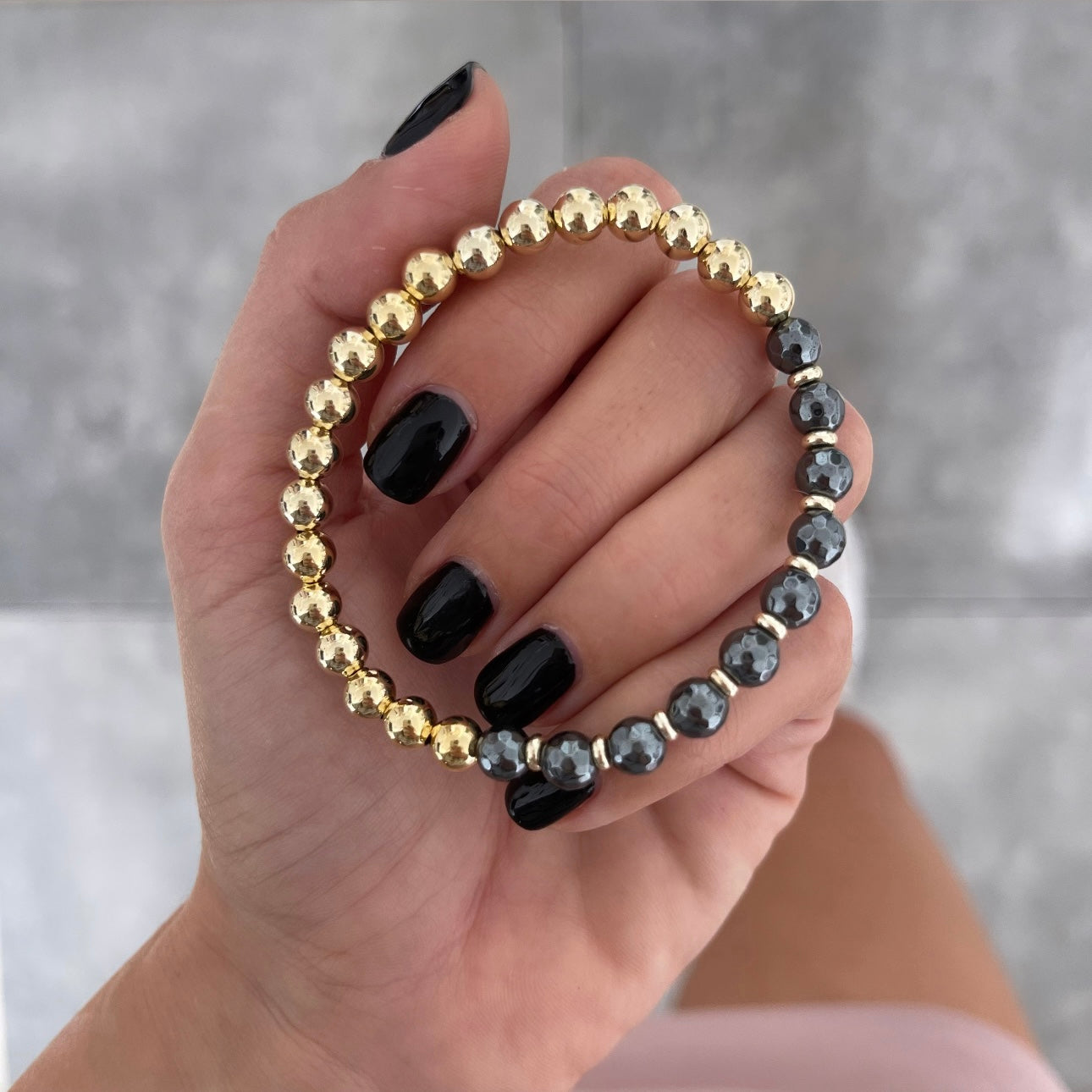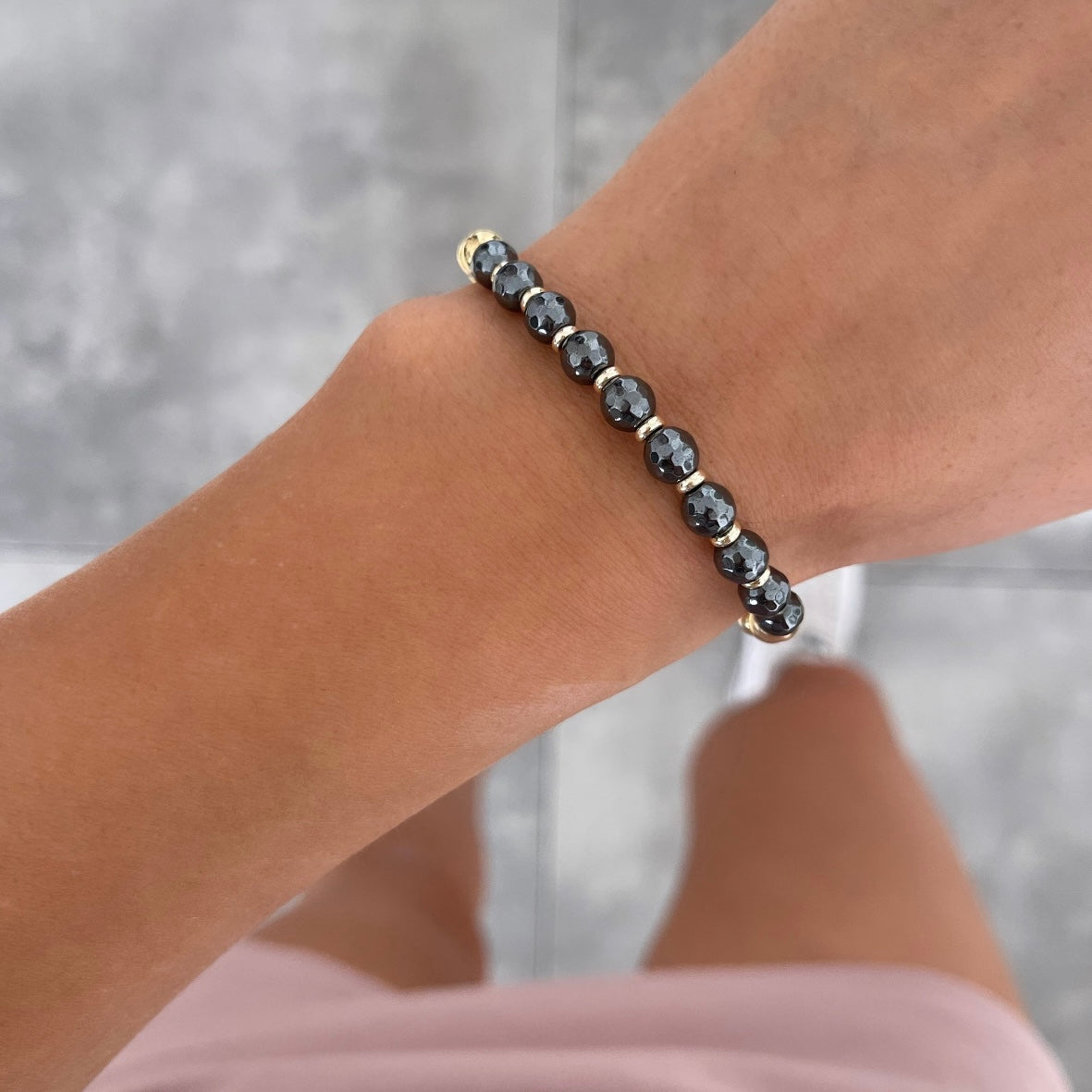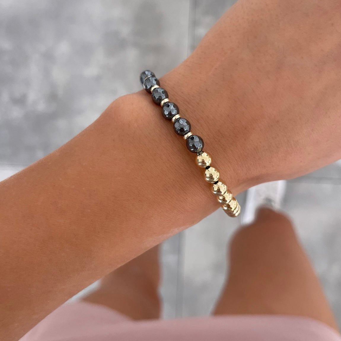 צמיד נמתח כדורים אפורים וכדורים זהב