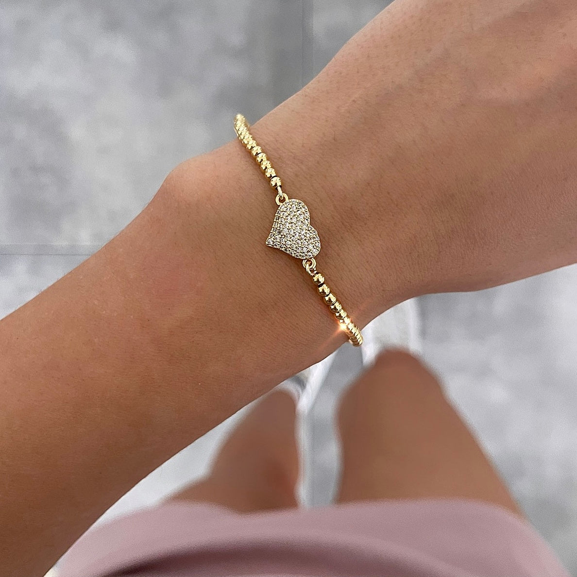 צמיד כדורים לב אמצעי גדול משובץ זהב