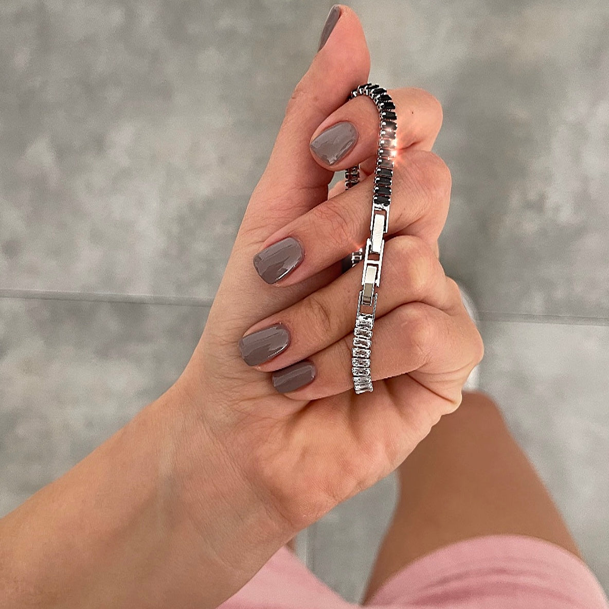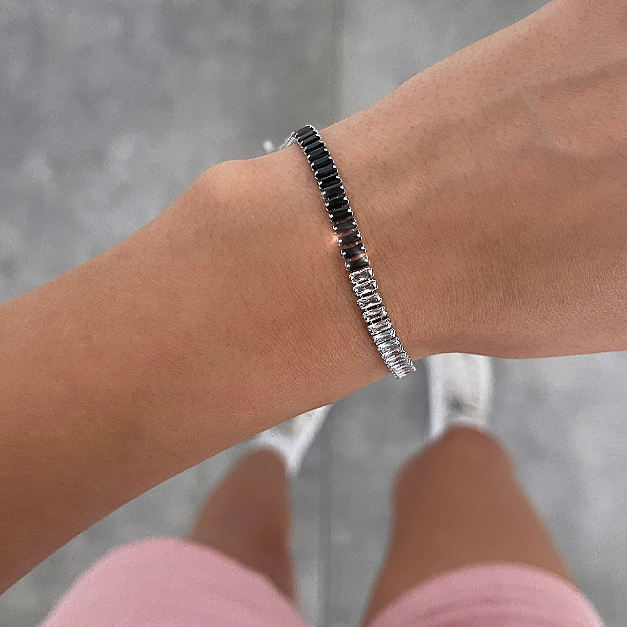 צמיד חצי שיבוצי שחור חצי שיבוצי שקוף כסף