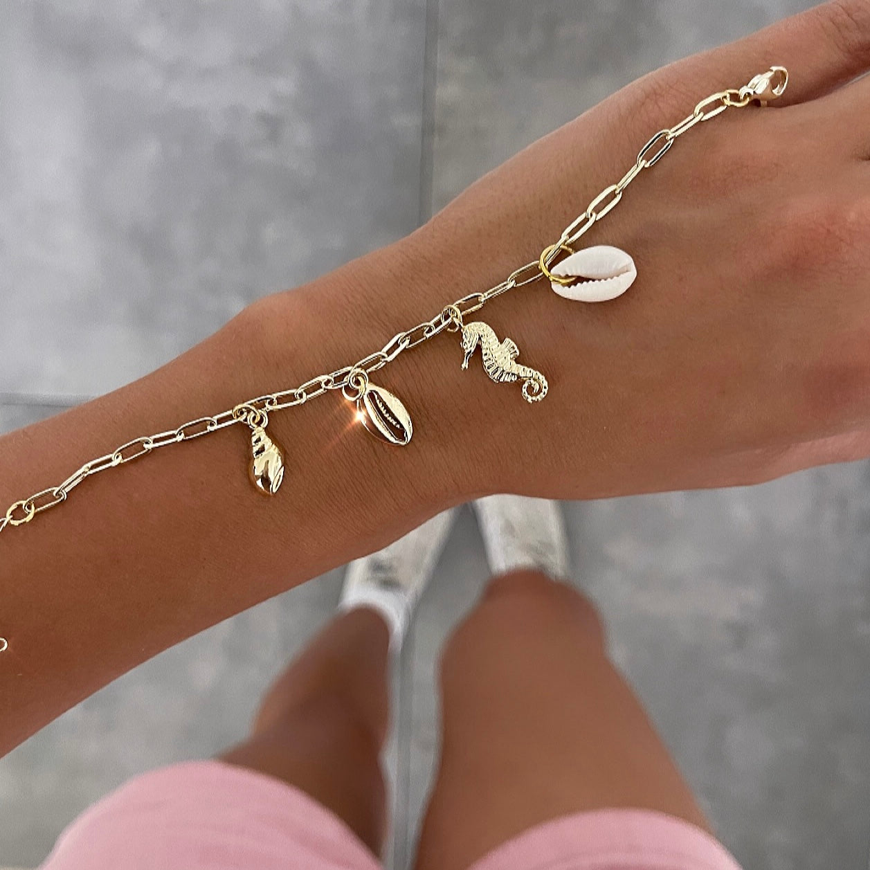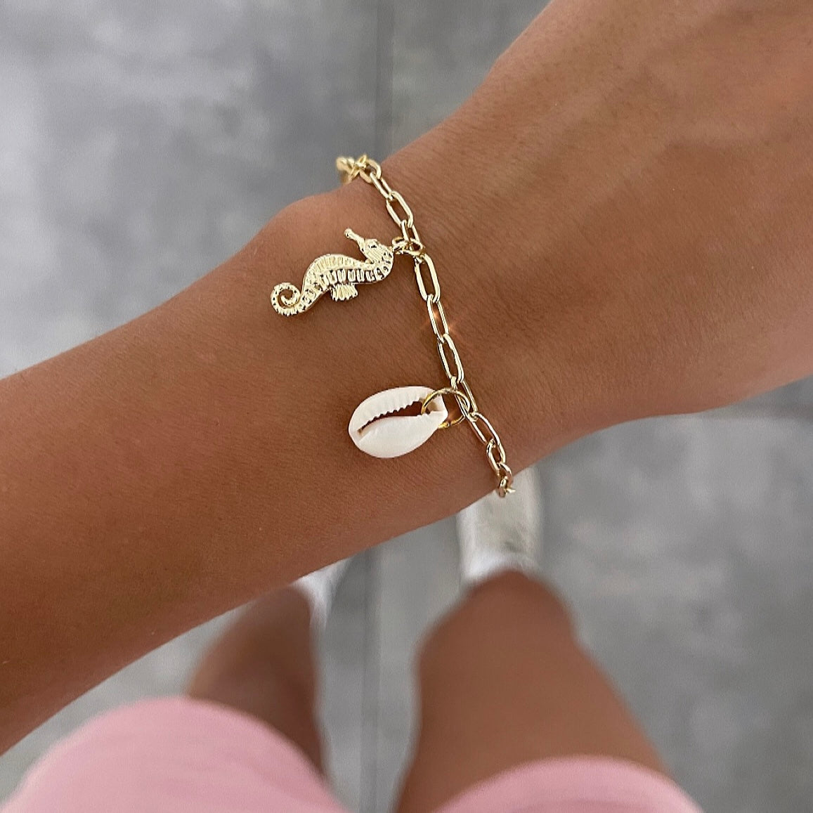 צמיד אלמנטים סוס-ים/צדפה לבנה זהב