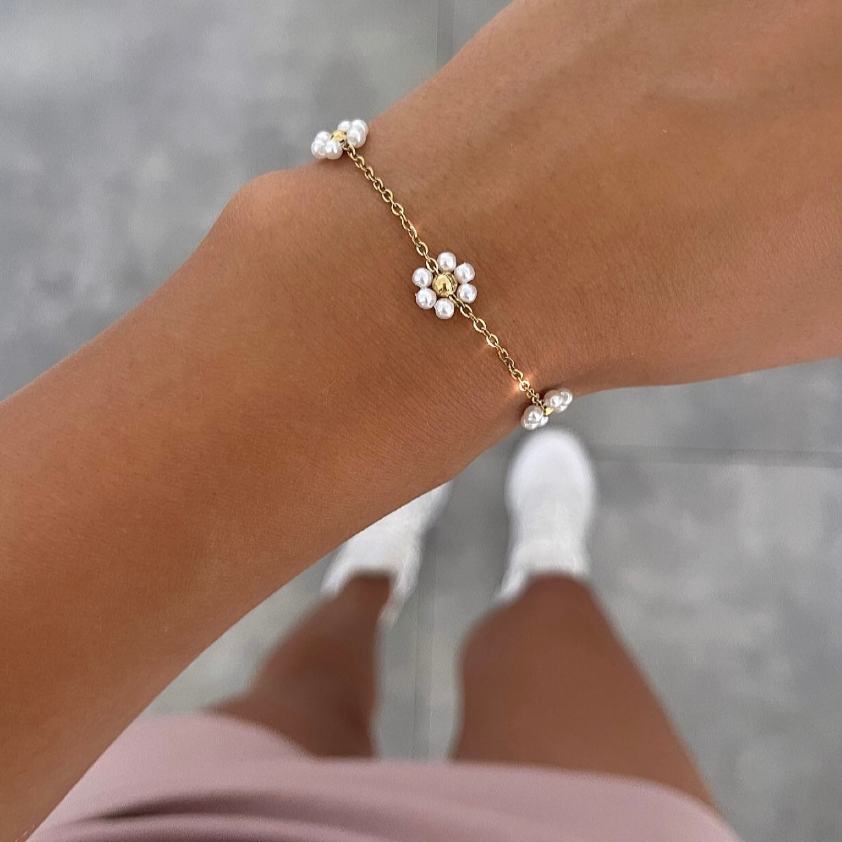 צמיד פרחים לבנים חוט /פרח לבן זהב