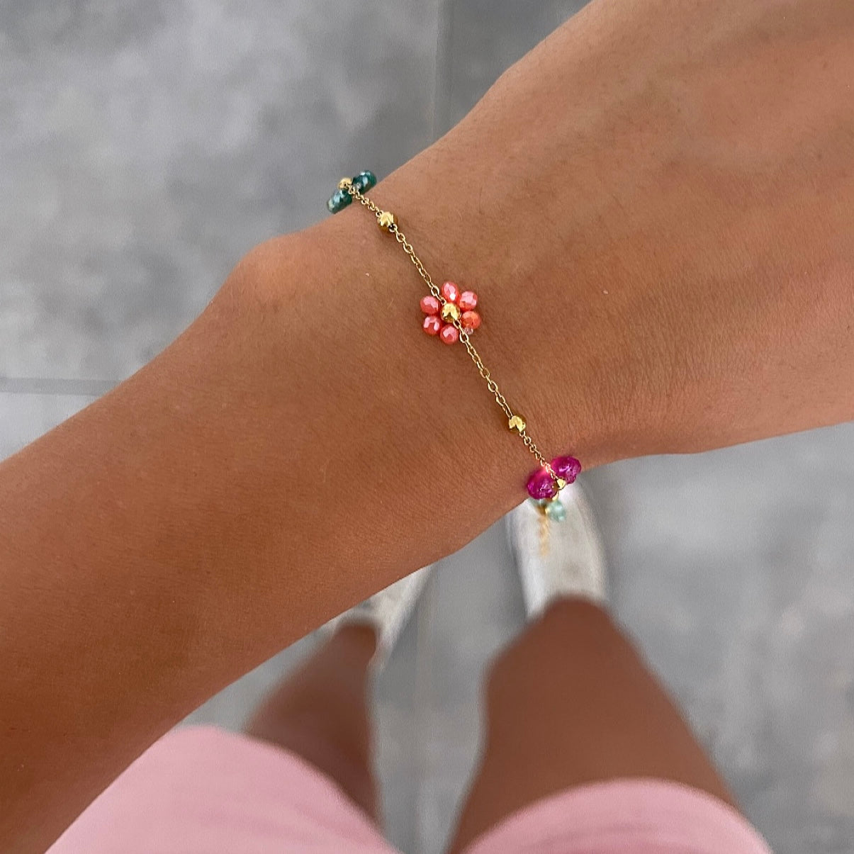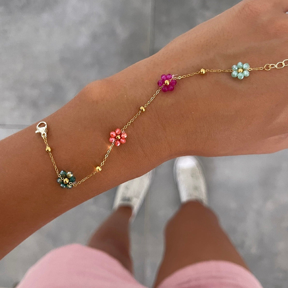 צמיד פרחים צבעוני זהב