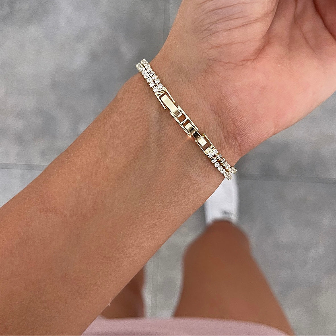 צמיד דו טניס עיגולים צבעוניות עליו זהב