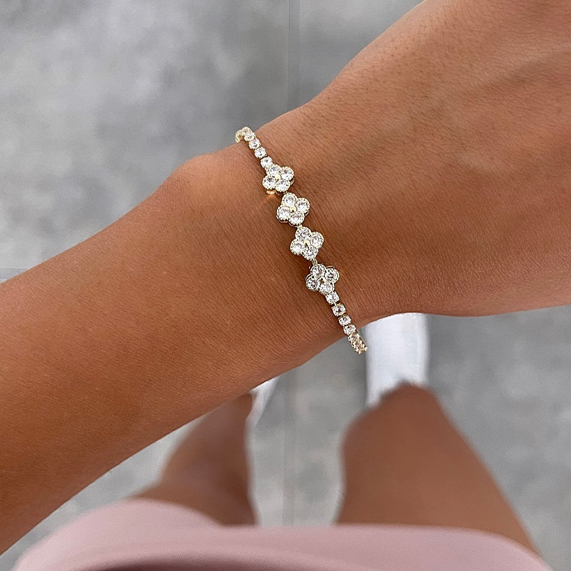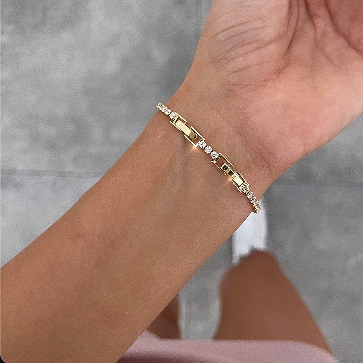 צמיד טניס 4 טולי משובצים קטנים זהב