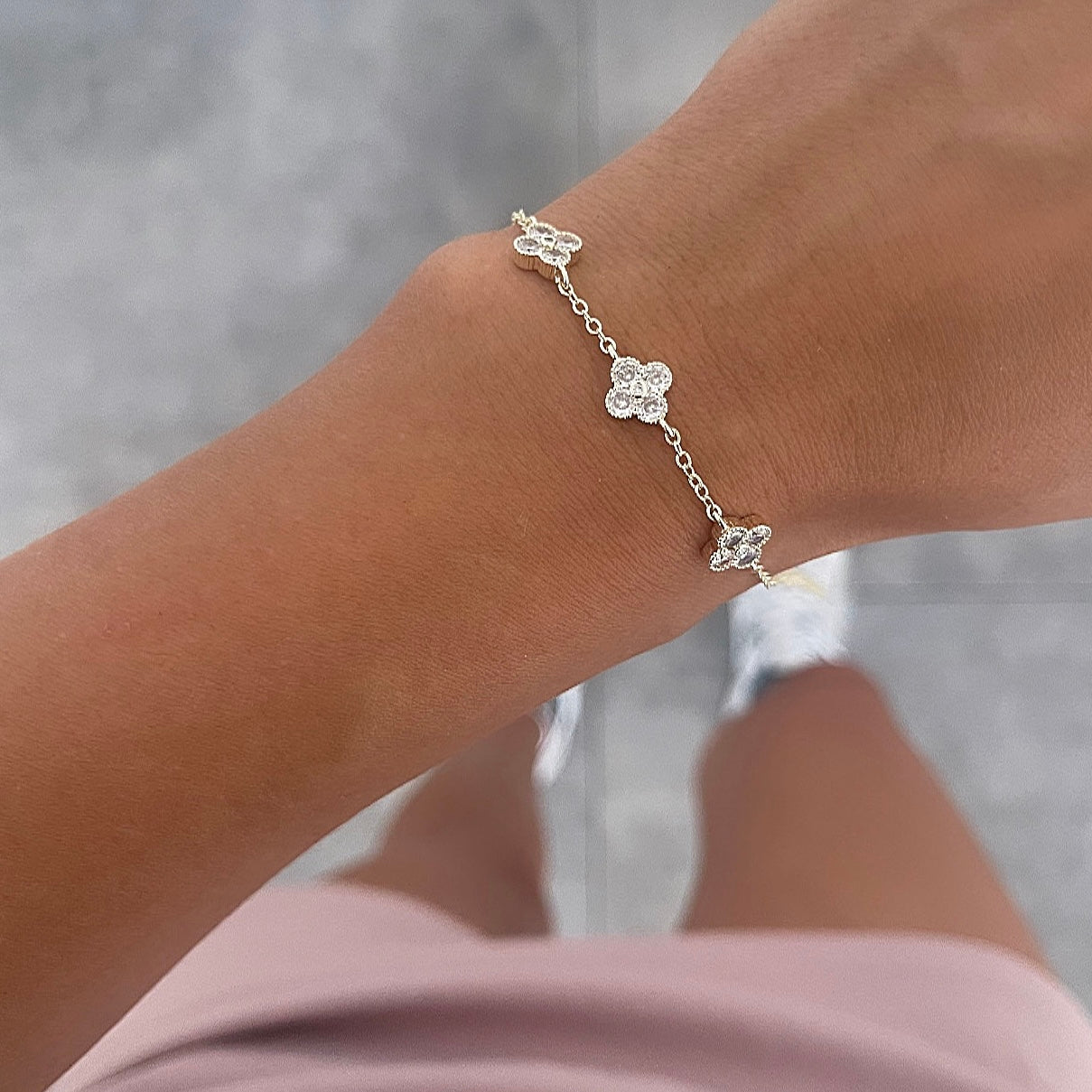 צמיד דק 3 טולי משובץ לאורך זהב