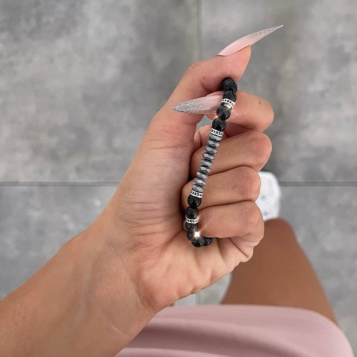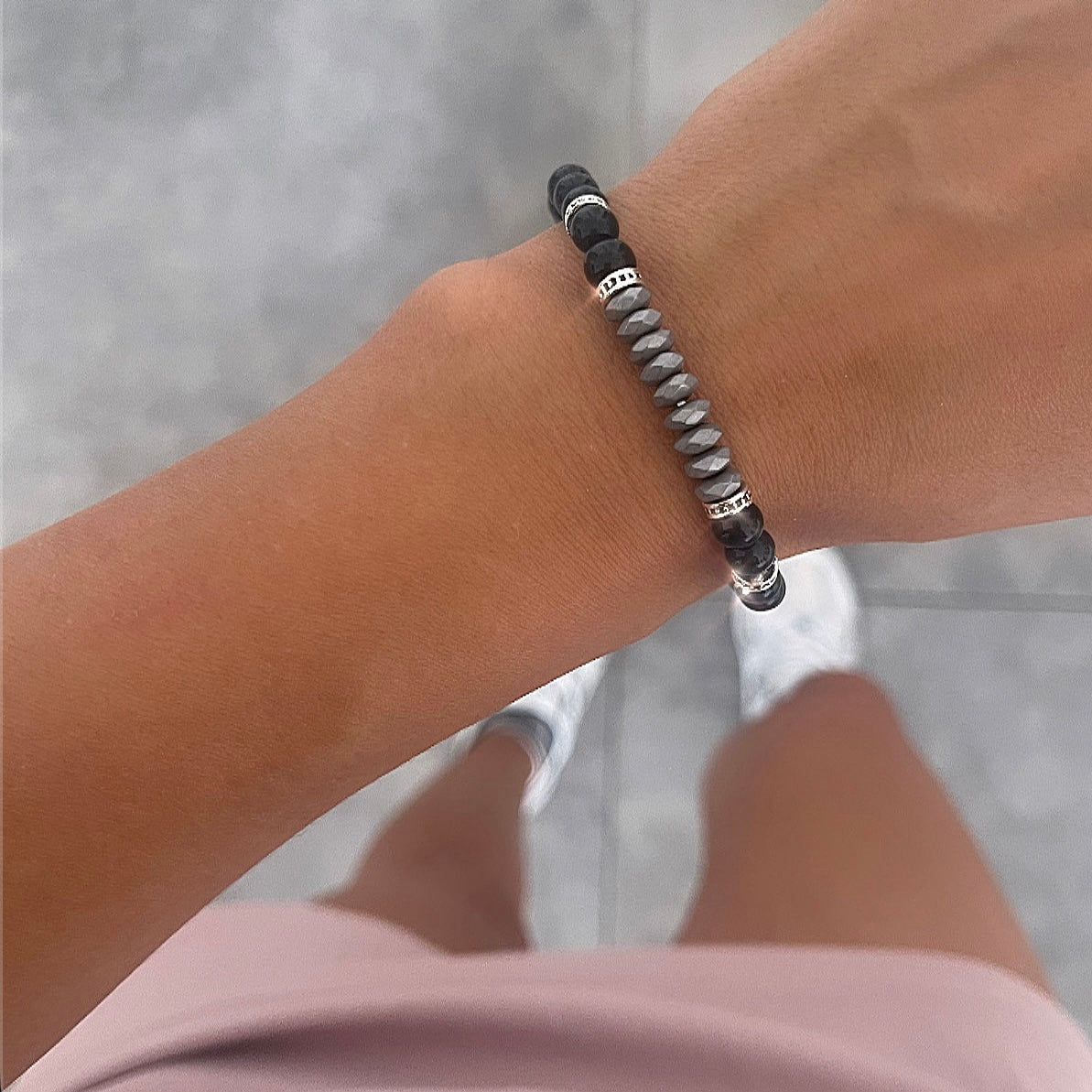 צמיד גבר חרוזים שחורים חרוזים פכוסים אפור