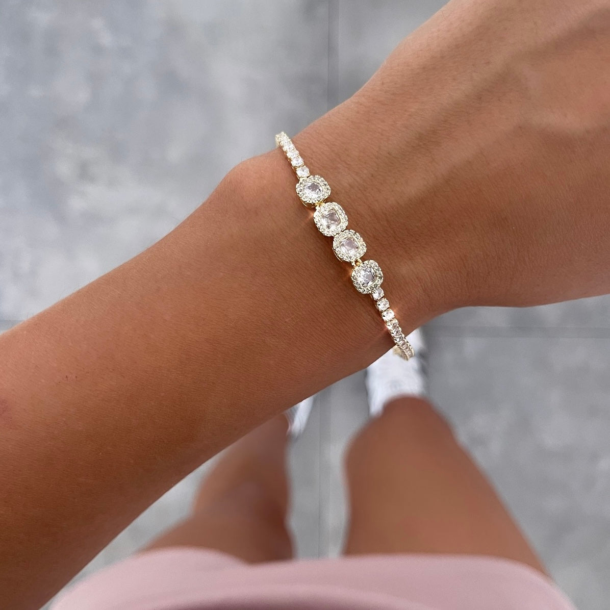 צמיד טניס רונילה 4 מרובעים שקוף זהב