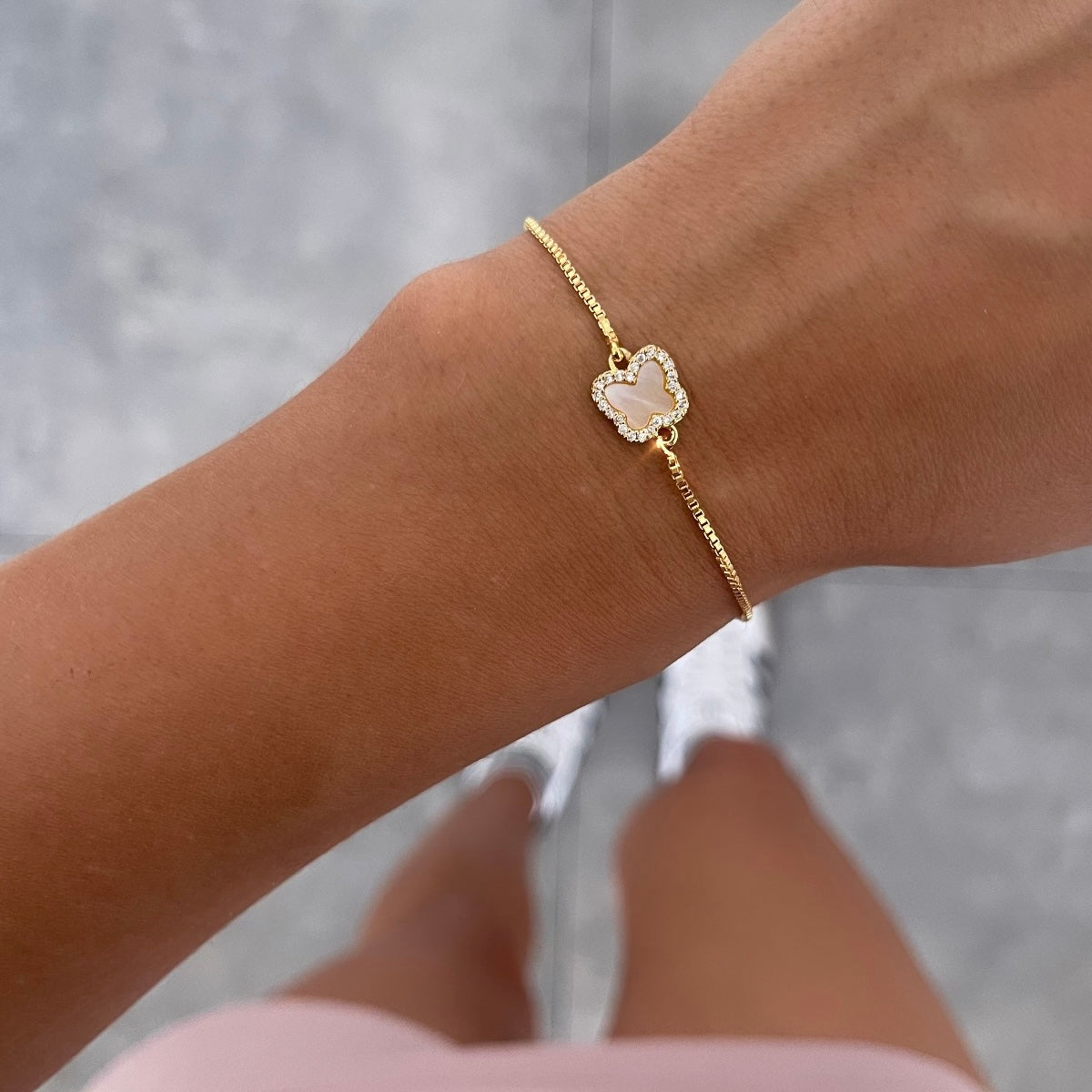 צמיד דק פרפר לבן שנהב מסגרת משובצת זהב
