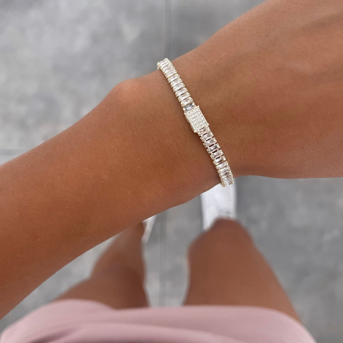 צמיד שיבוצי זירקון מלבן באמצע זהב