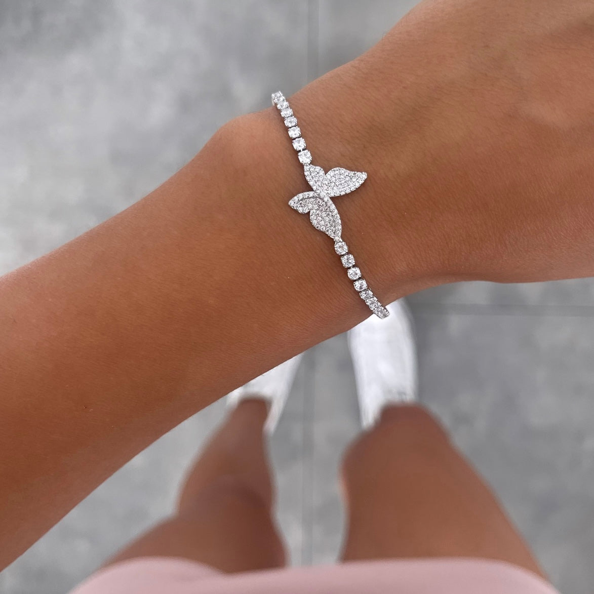 צמיד טניס פרפר אלכסוני משובץ כסף