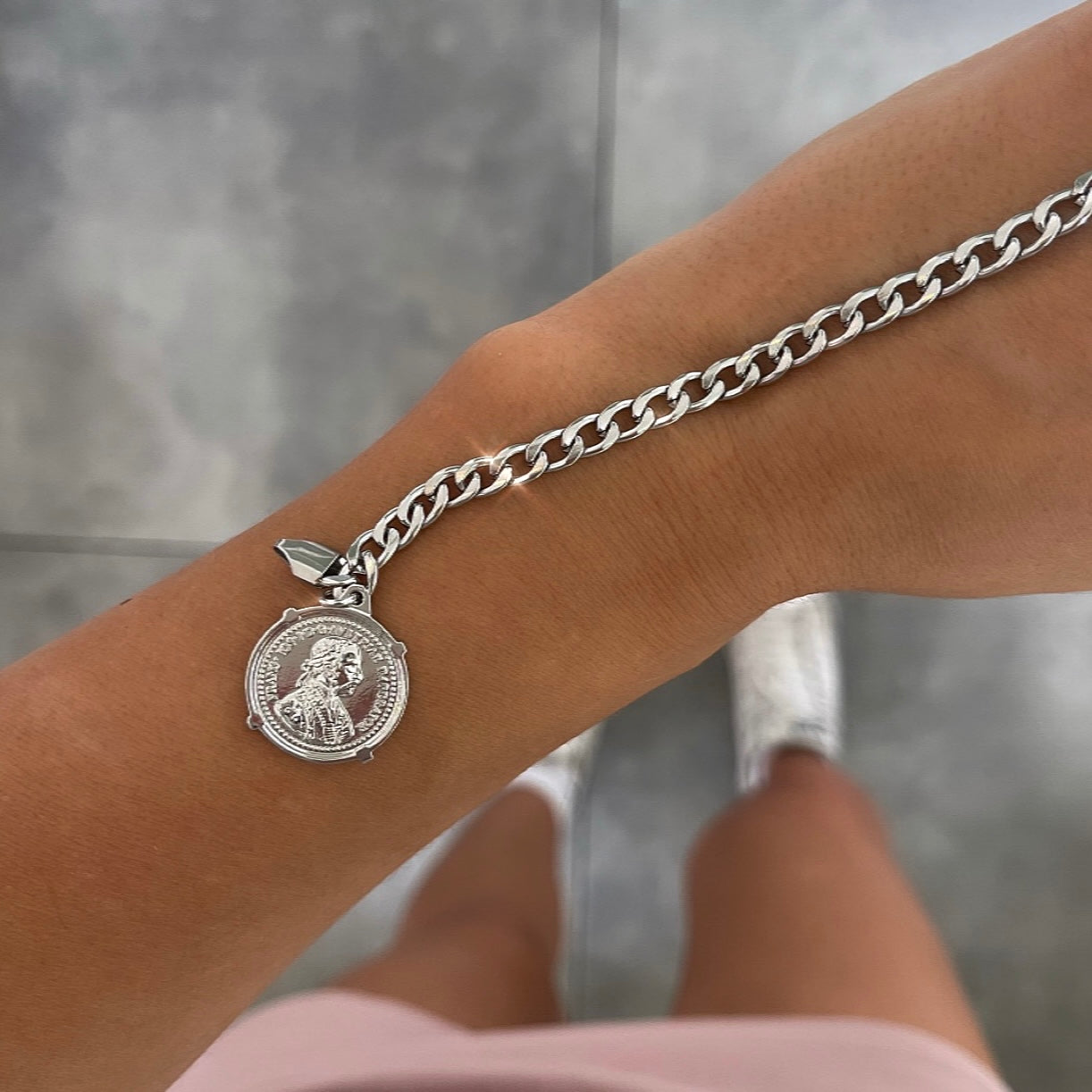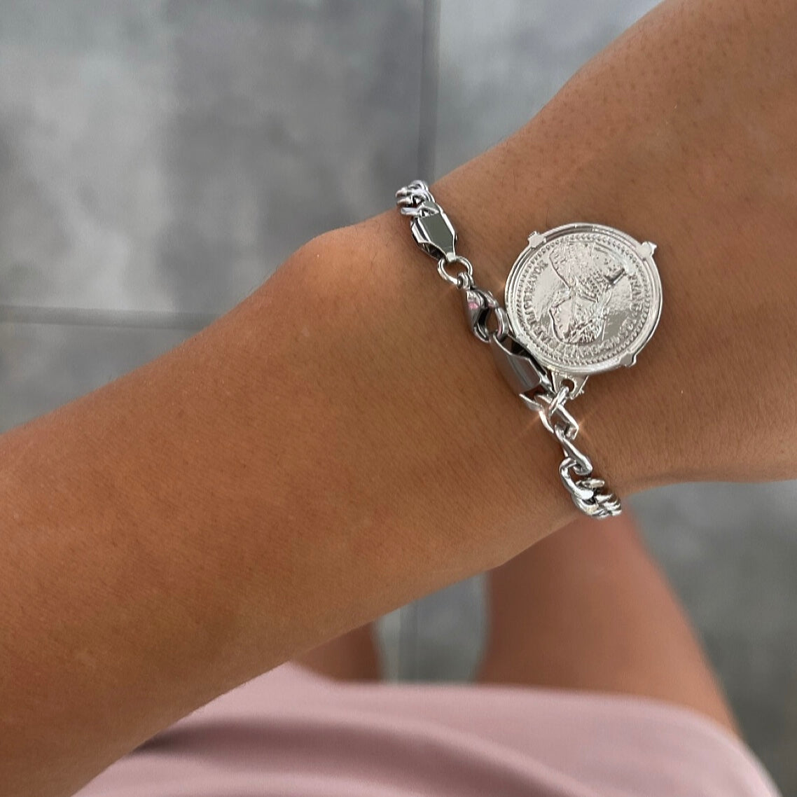 צמיד גורמט בסופו מטבע כסף