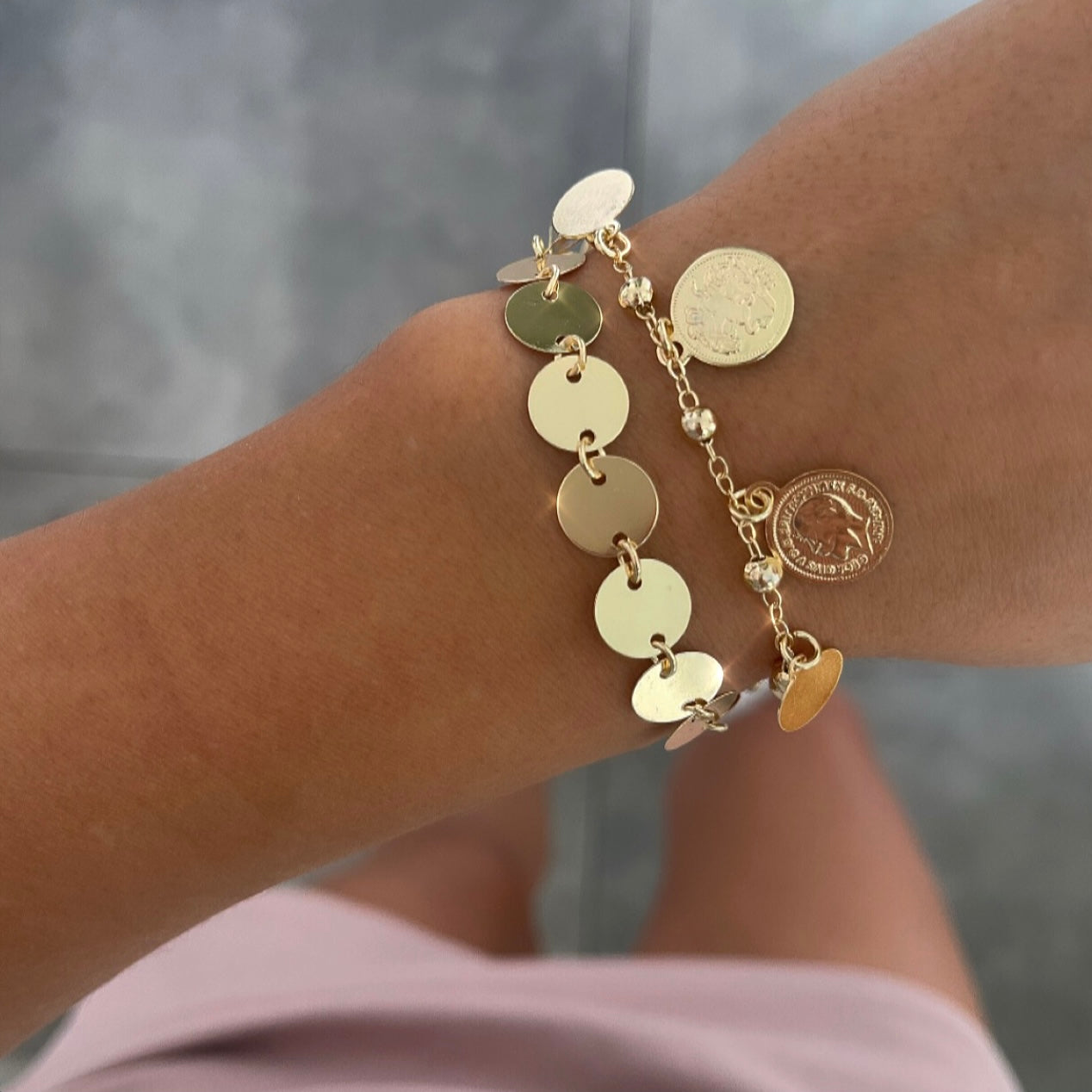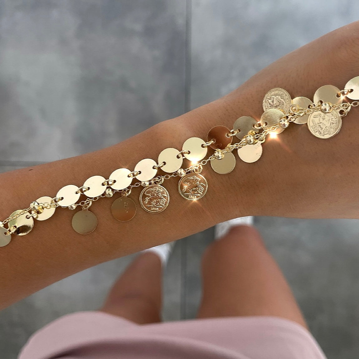 צמיד מטבעות קטנים נופלים זהב