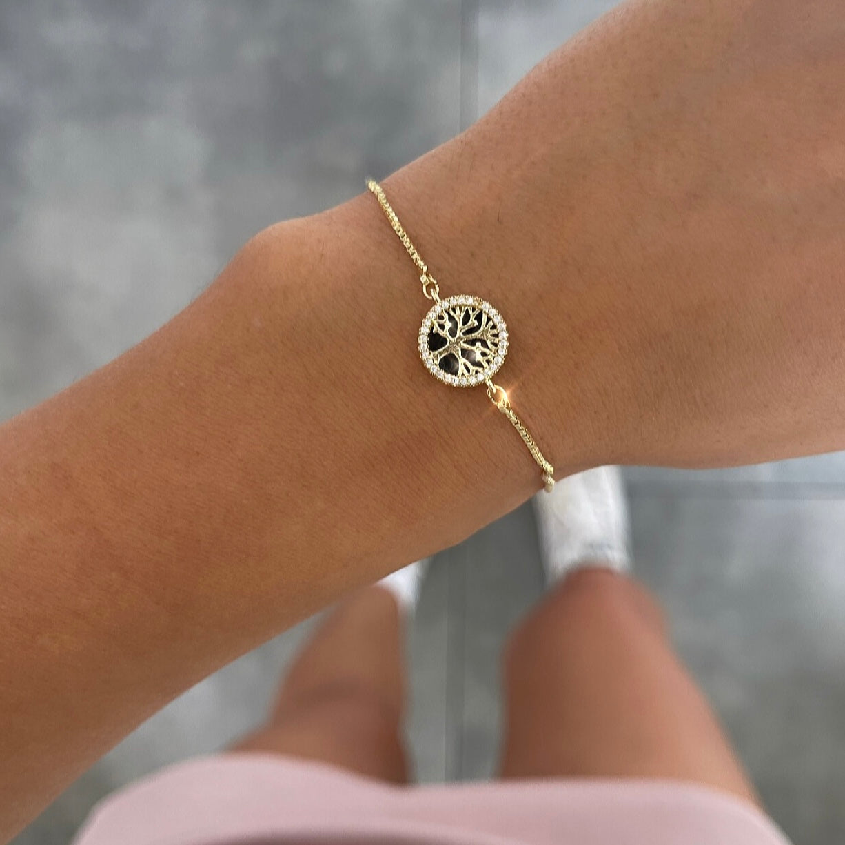 צמיד דק עיגול שחור עץ החיים טקסטורה זהב
