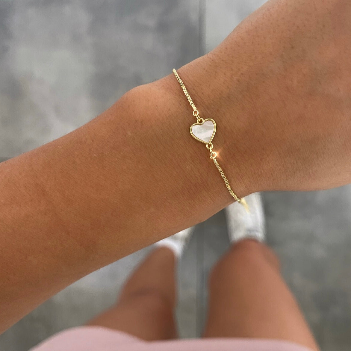 צמיד דק לב שנהב לבן באמצע זהב