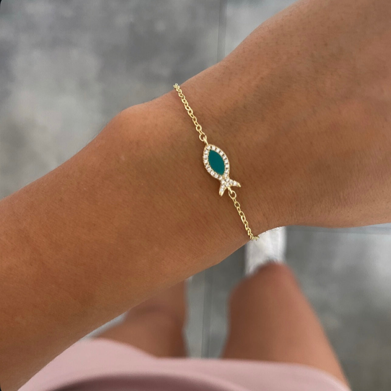 צמיד דק דג טורקיז זהב
