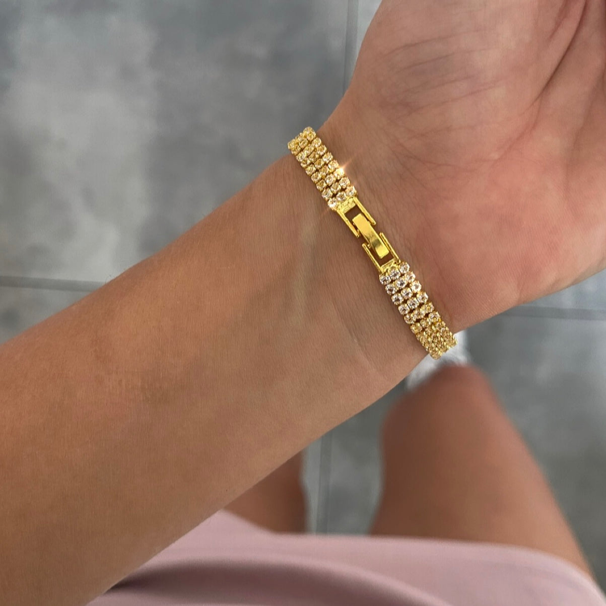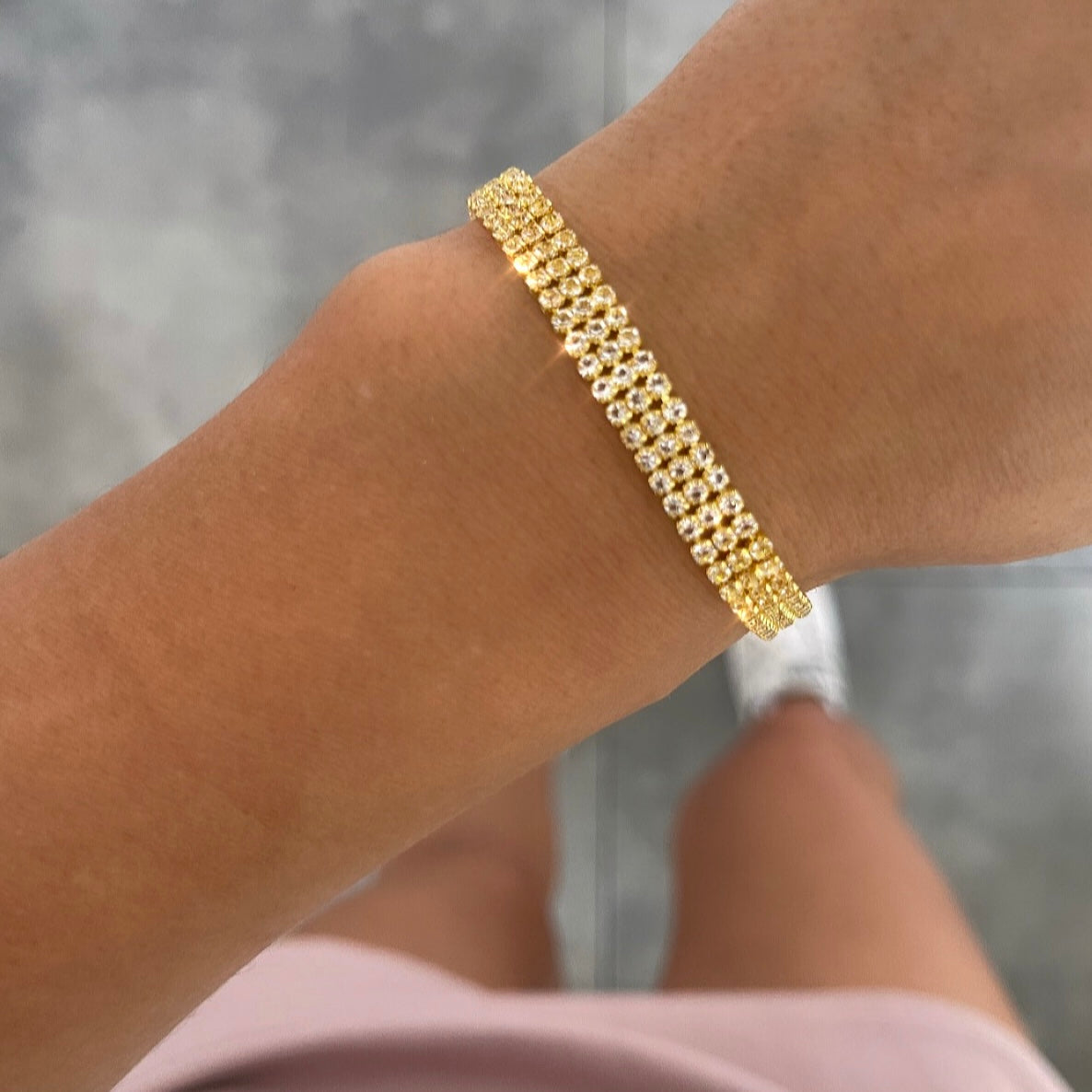 צמיד 3 שורות טניס צמודות זהב
