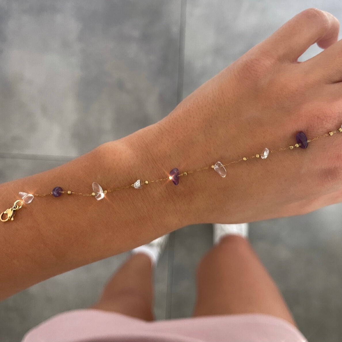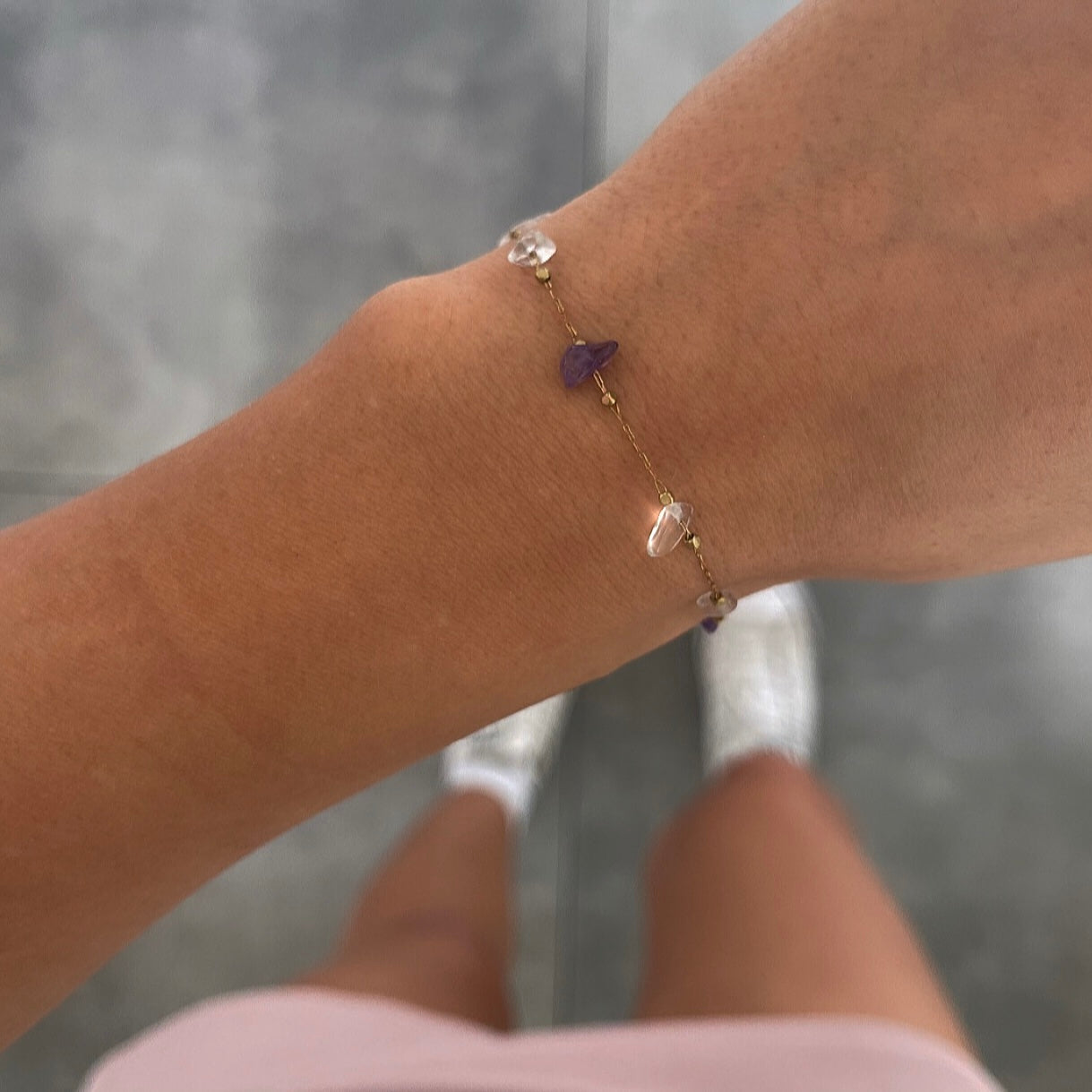 צמיד רווח אבנים שבורות לבן סגול זהב