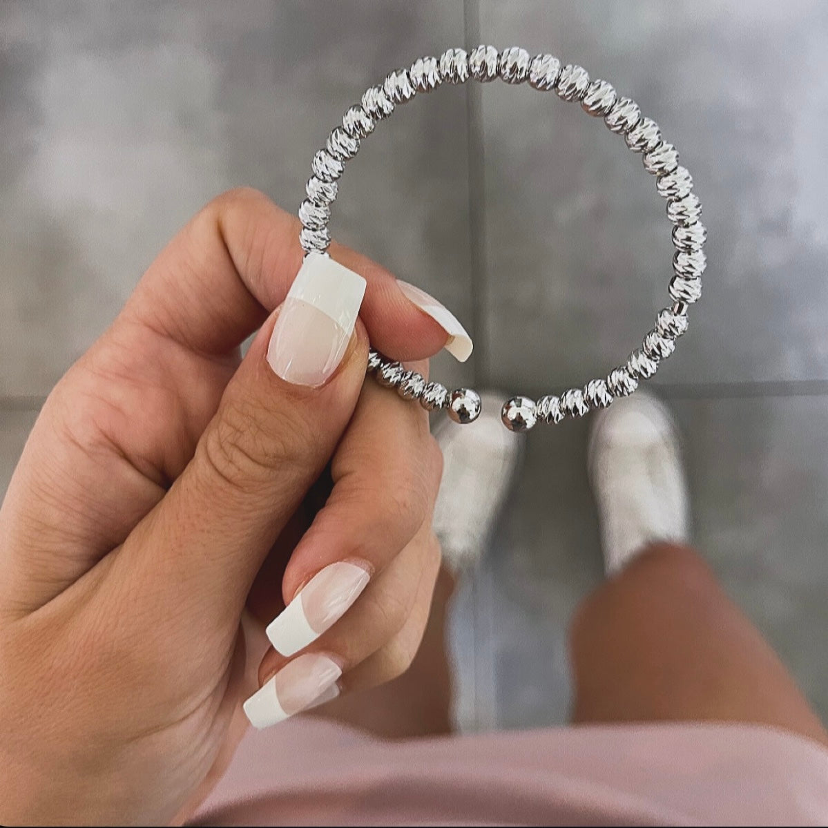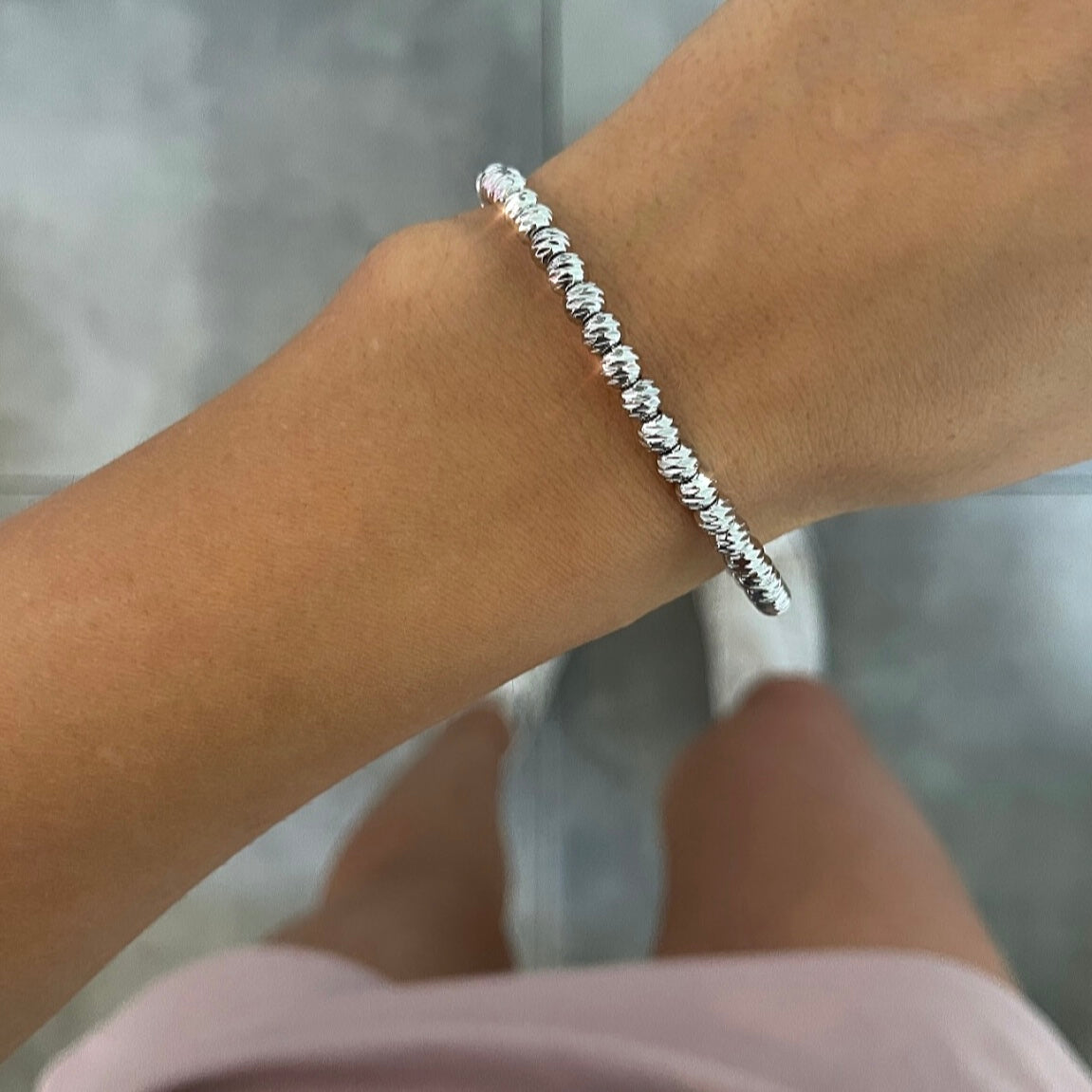 צמיד קשיח קשיח כדורי לייזר כסף