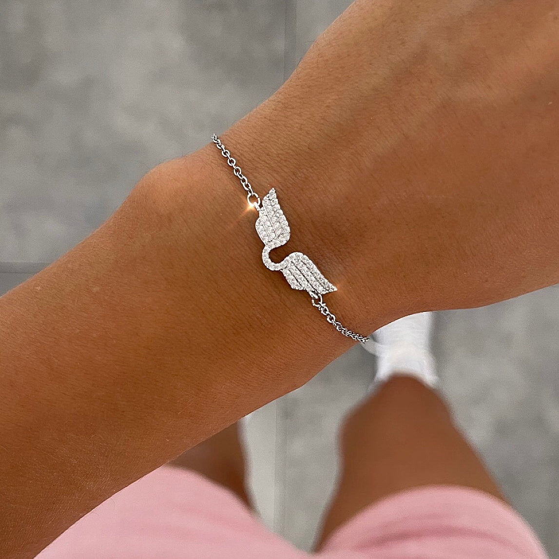 צמיד דק כנפיים משובצות כסף
