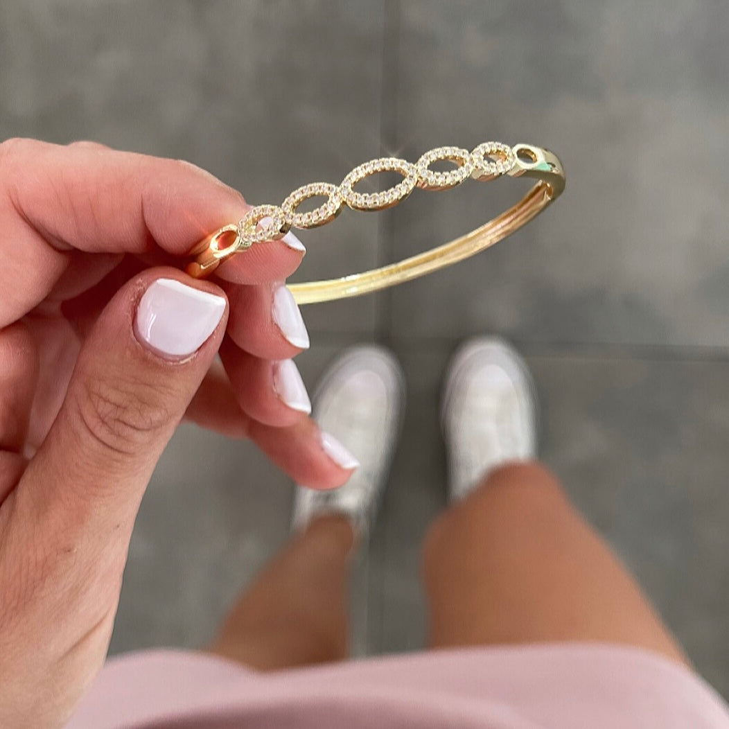 r צמיד פאפא אליפסיות חלולות משובצות זהב