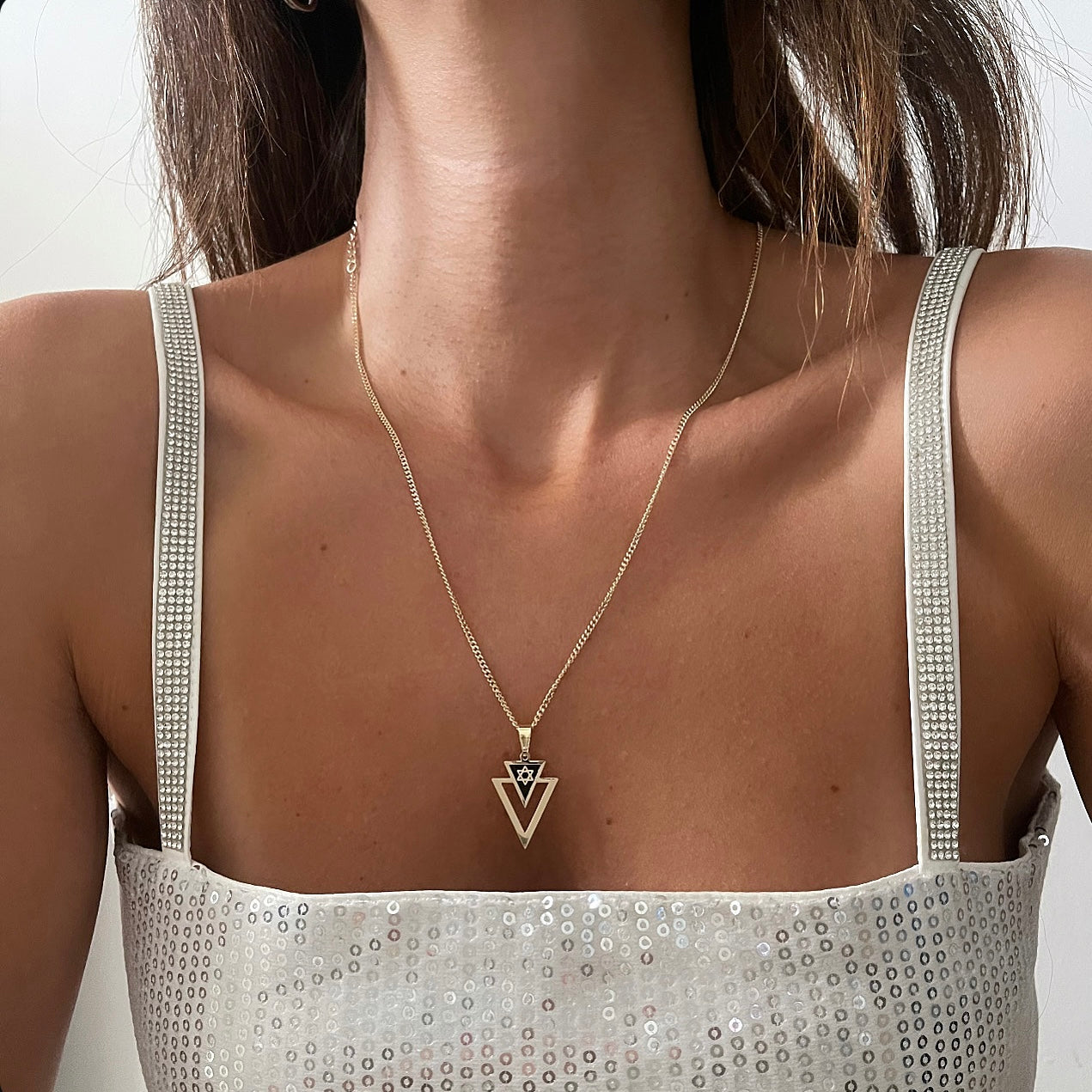 שרשרת מגן דוד שחור משולש במשולש זהב