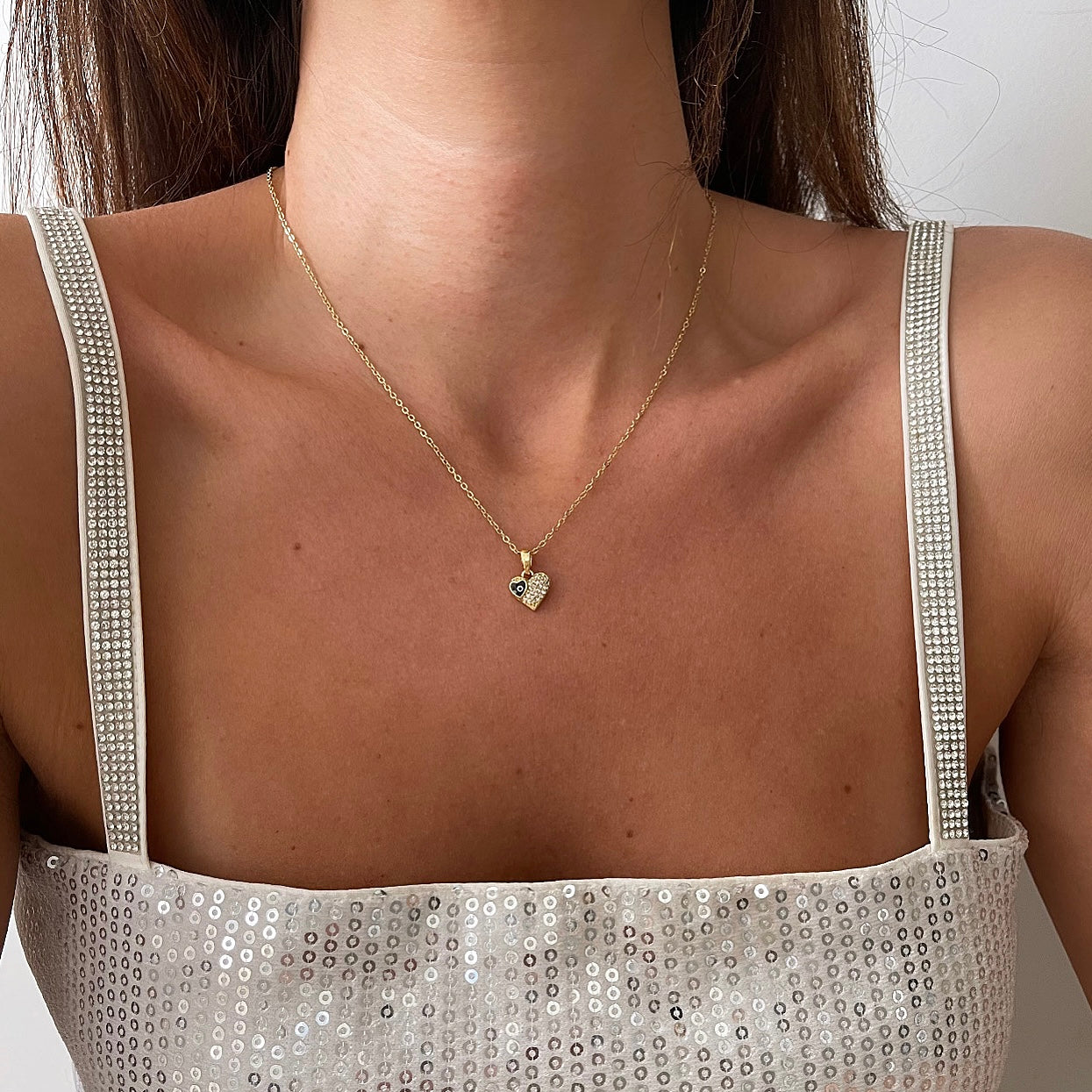 שרשרת לב קטן משובץ בתוכו לב שחור עם עין קטן זהב