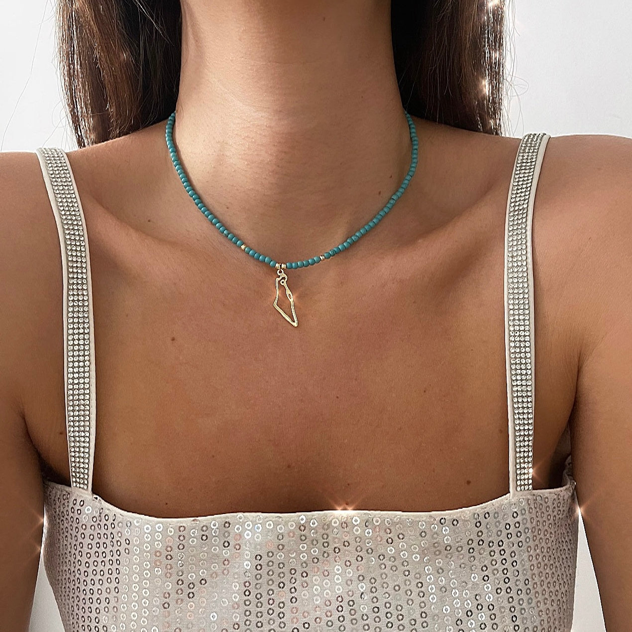 שרשרת חרוזים טורקיז מפה חלולה זהב