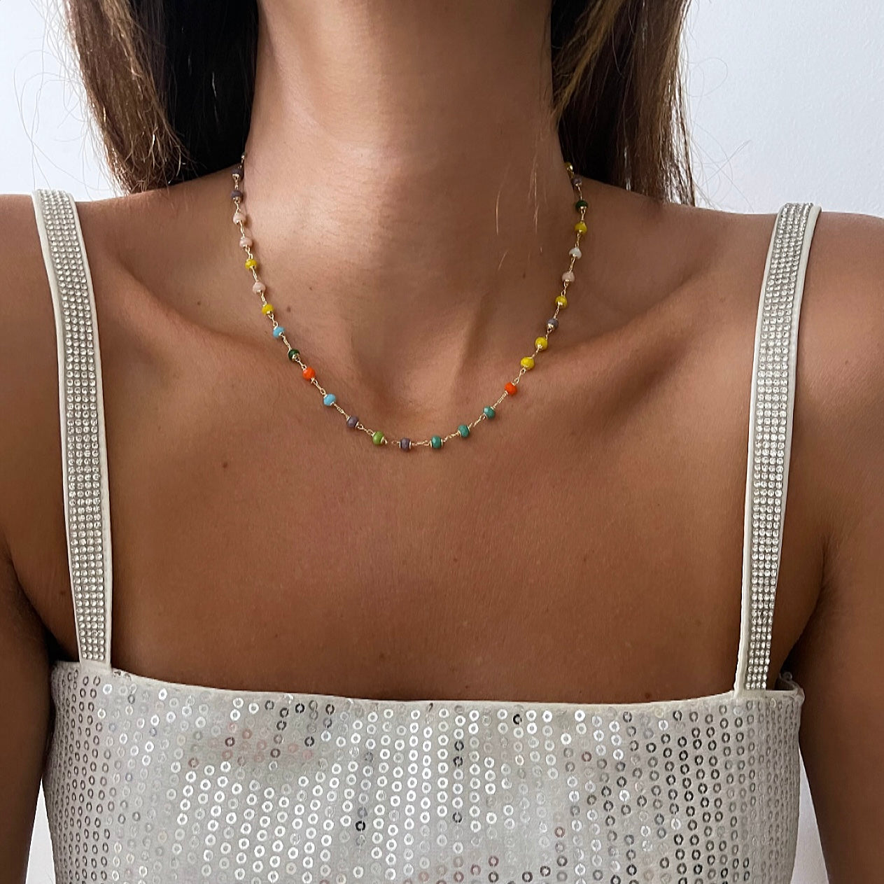 שרשרת סיי חוליות רווח /חרוז/חוליות /חרוזים צבעוני עגול זהב