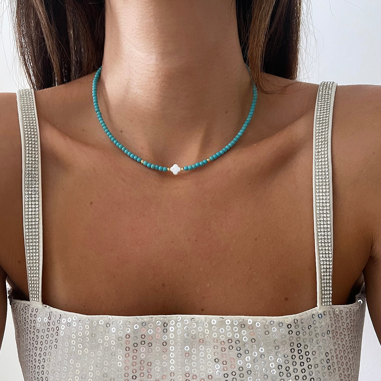 שרשרת טורקיז טולי מושחל לבן פנינה זהב
