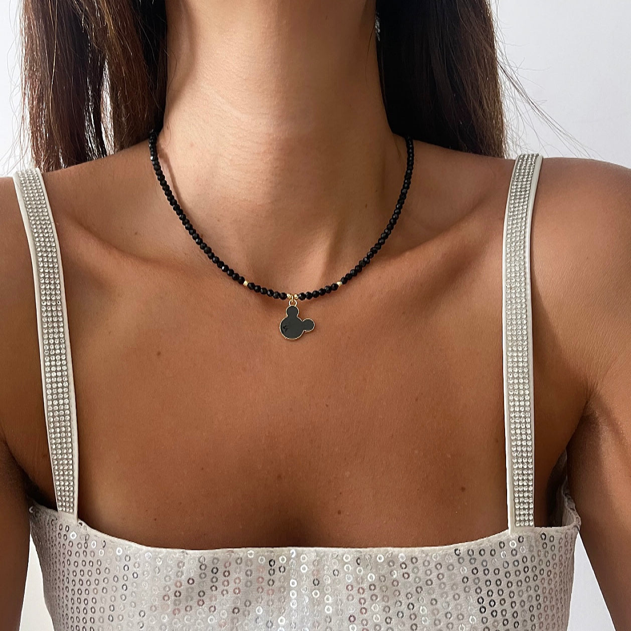 שרשרת בטל חרוזים שחורים מימי שחור זהב