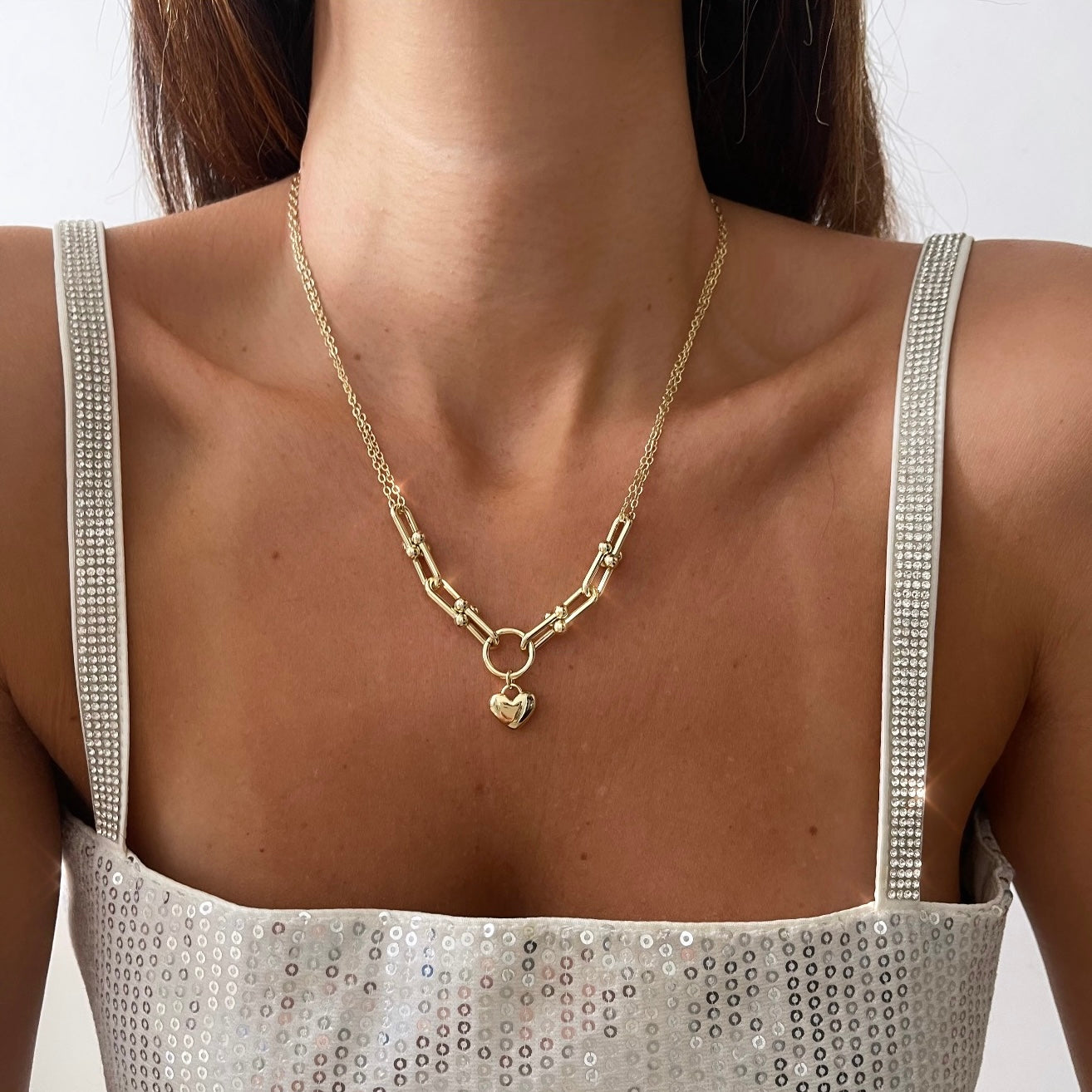 שרשרת ליאן עבה חלק קדמי עם תליון לב חישוק זהב r