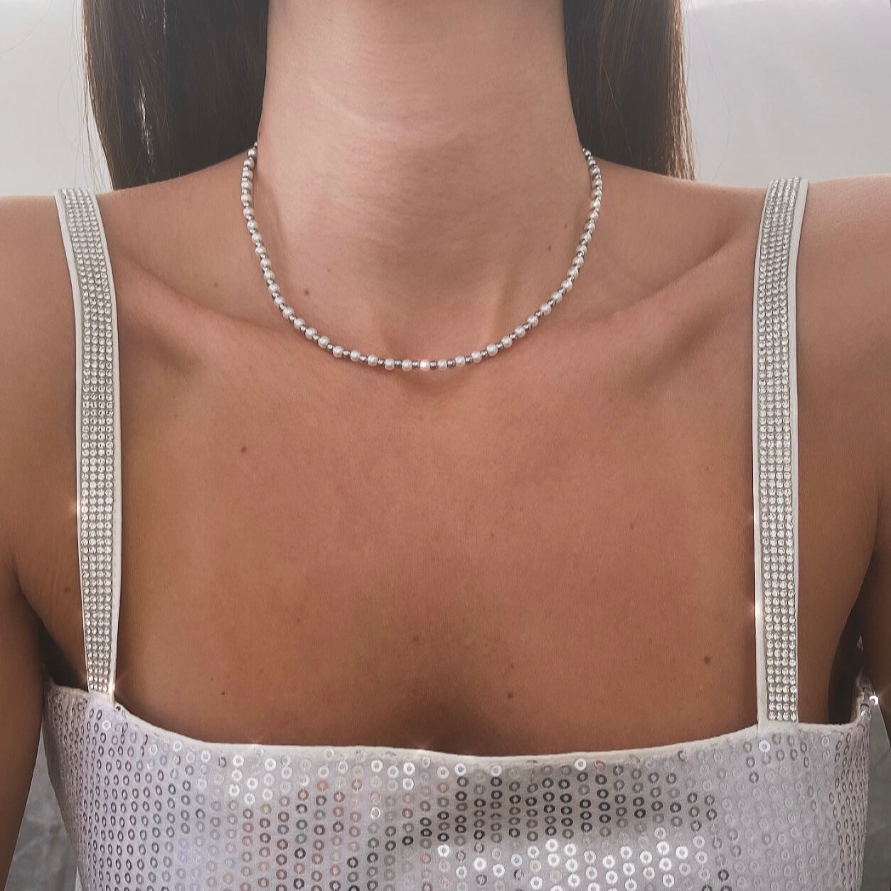 שרשרת כדורים כדור פנינה כדור כסף
